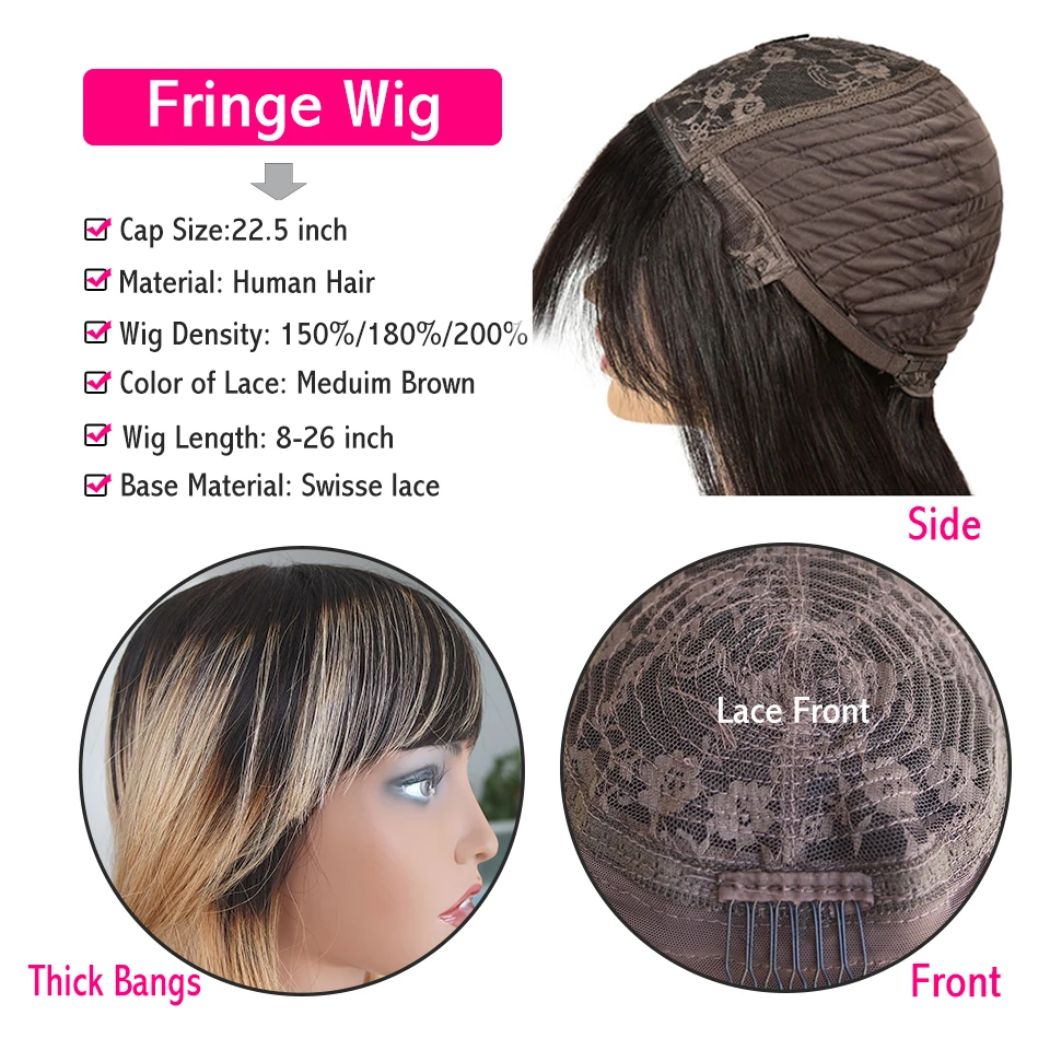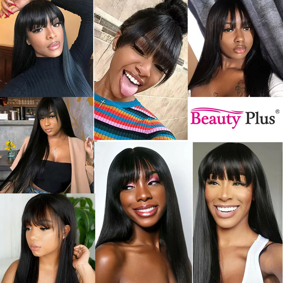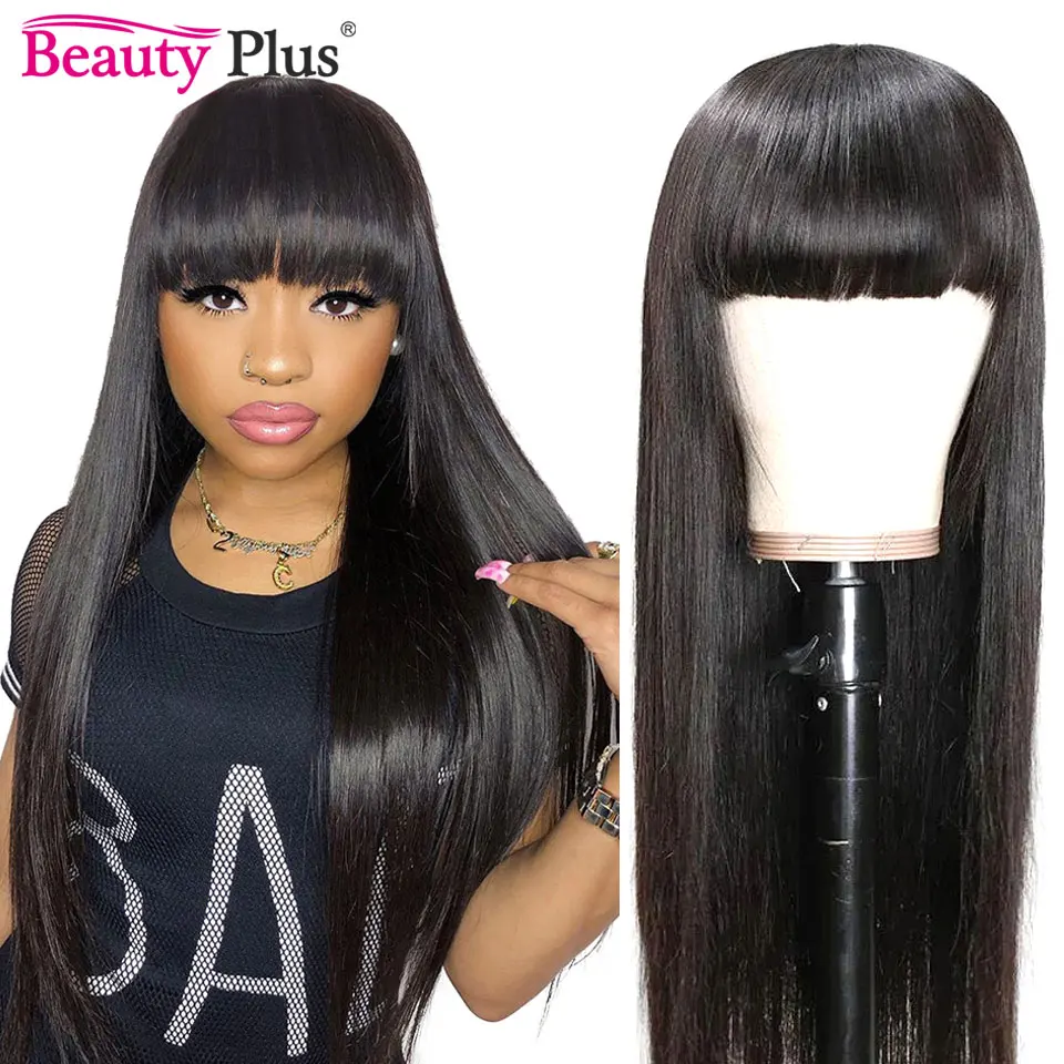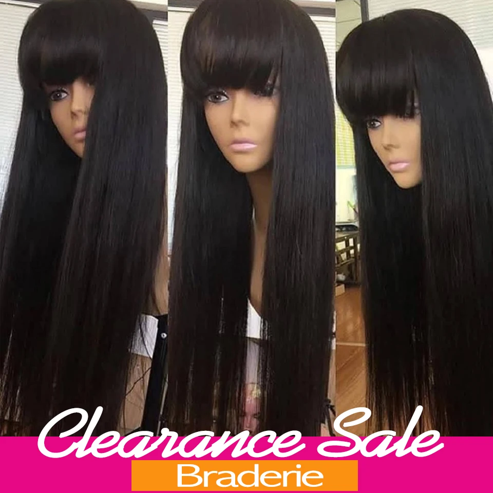Необработанные индийские 100% человеческие волосы парик с челкой 32 34 дюйма полностью парики машинной работы с челкой длинные волосы Remy волосы черный парик с челкой