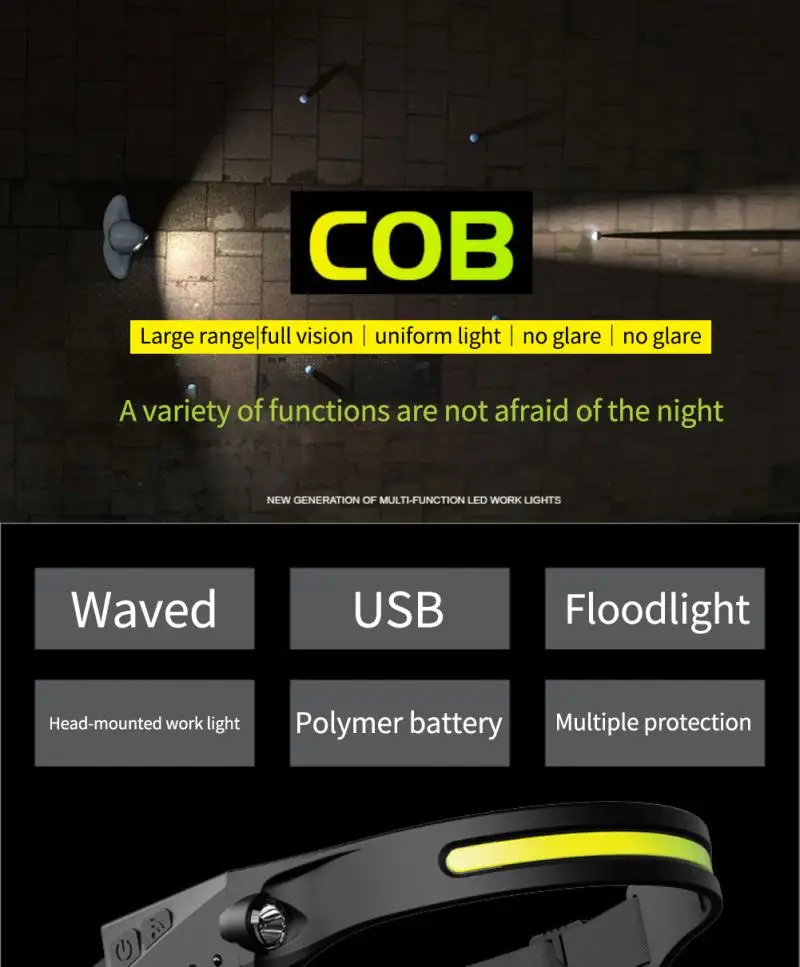 Индукционный налобный фонарь с COB светодиосветодиодный, Головной фонарь со встроенным аккумулятором на 1200 мА, зарядка через USB, Головной фонарь с несколькими режимами освесветильник