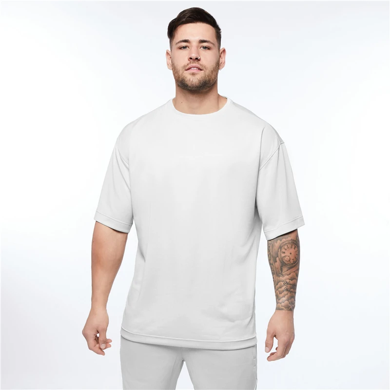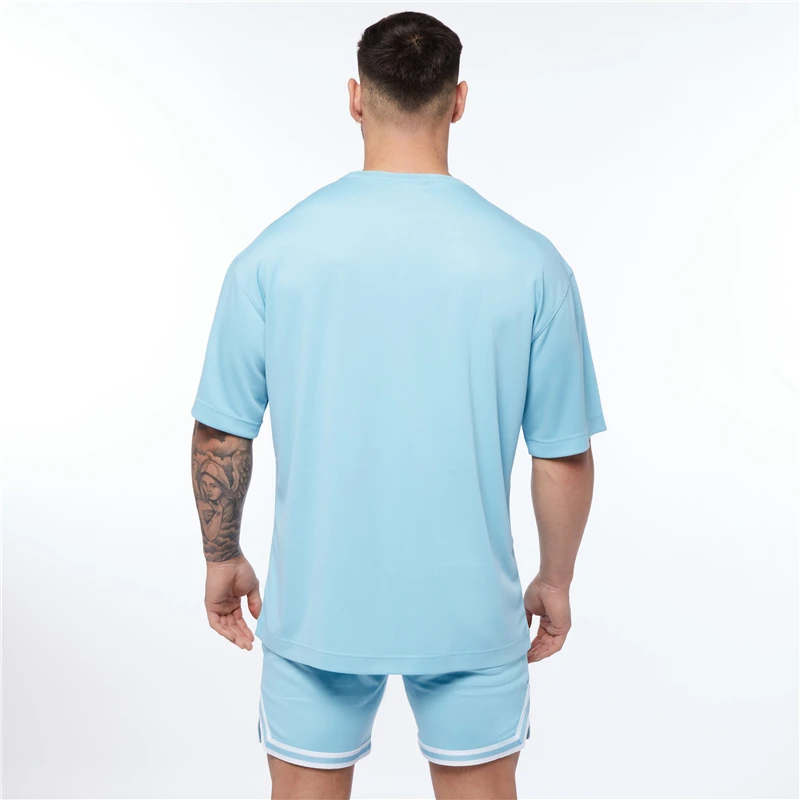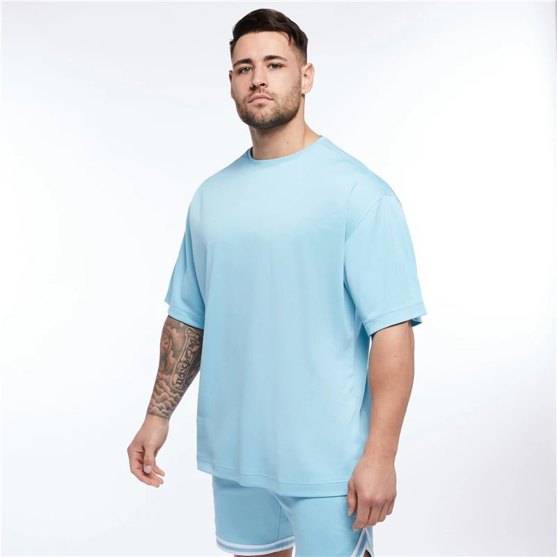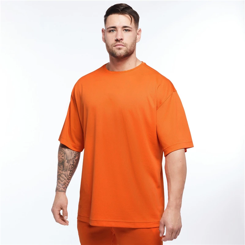 Футболка мужская оверсайз, однотонная сетчатая одежда для спортзала, бодибилдинга, фитнеса, свободная спортивная одежда, уличная одежда в стиле хип-хоп