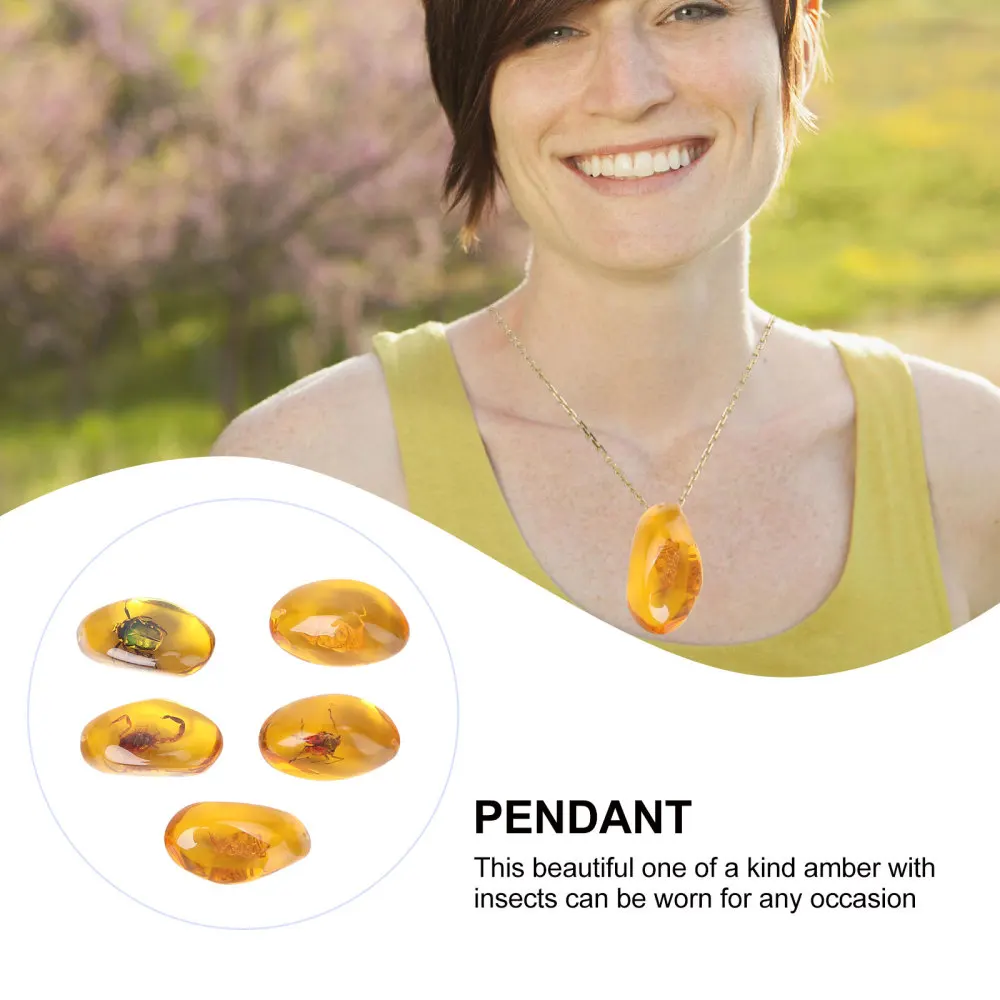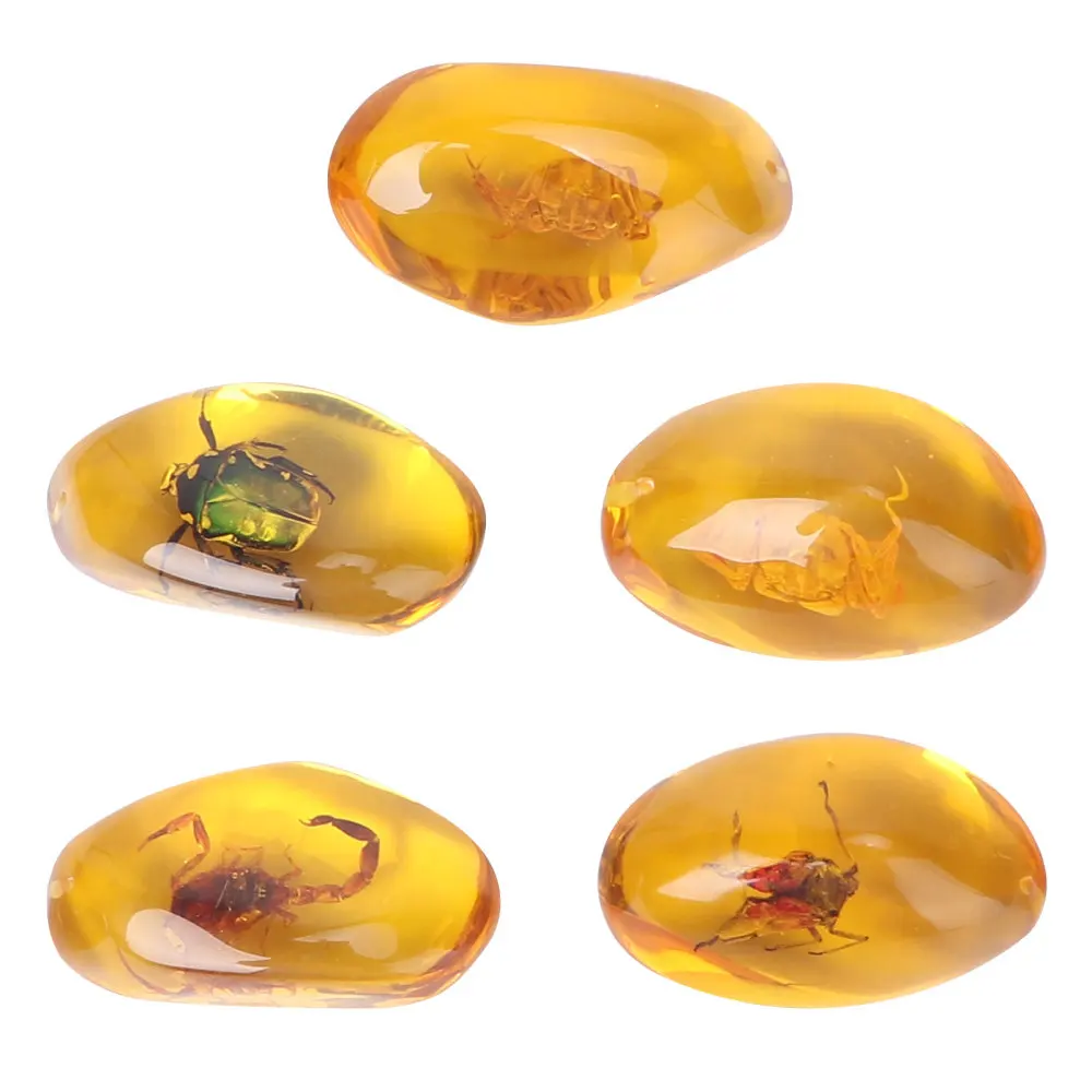 5 шт., овальный кулон в виде янтарного ископаемого насекомых