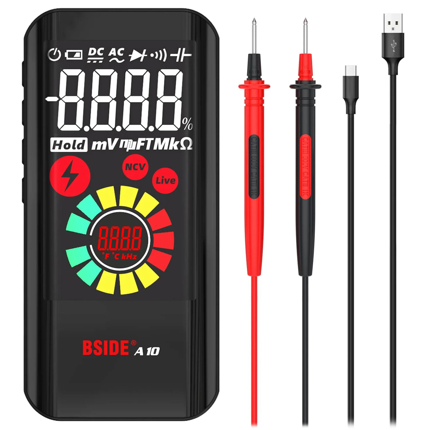 Ультрапортативный Цифровой мультиметр BSIDE A10 с цветным ЖК-дисплеем, 9999 истинное среднеквадратичное значение, измеритель напряжения постоянного и переменного тока, емкости, сопротивления, диода, бесконтактного напряжения, Гц, тестер пожарных проводов