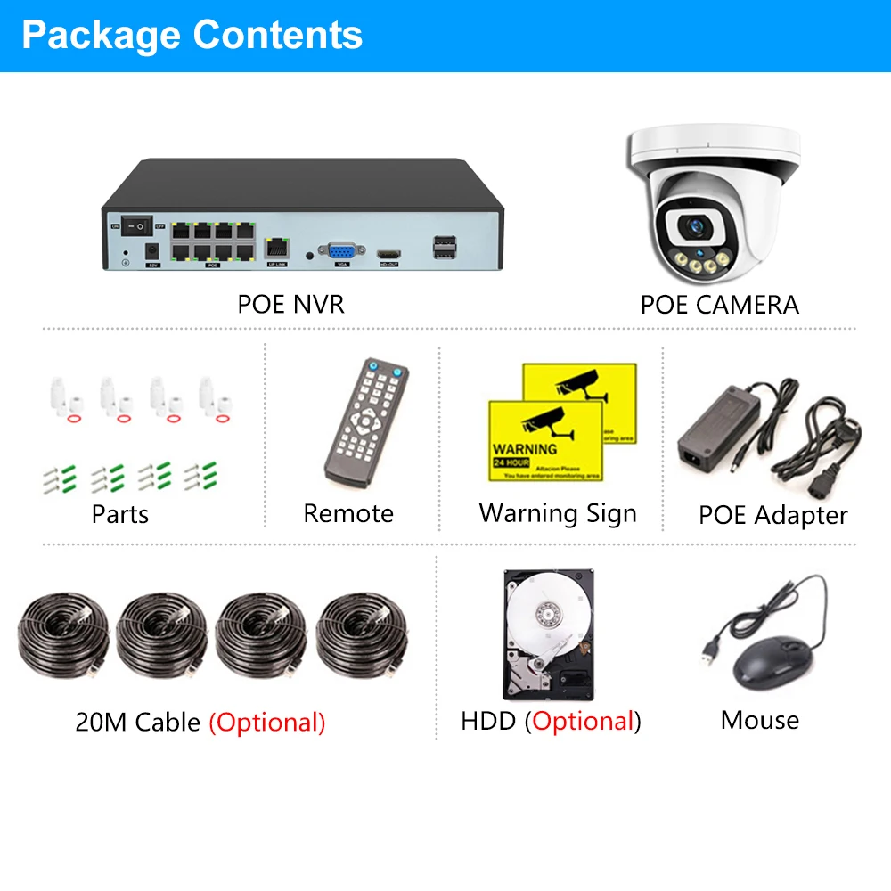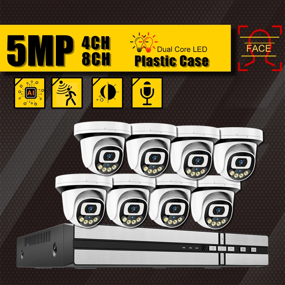 Купольная IP-камера видеонаблюдения, 8 каналов, POE, H.265, 4,0 МП, 5,0 МП, домашняя аудиосистема, двойные светодиоды