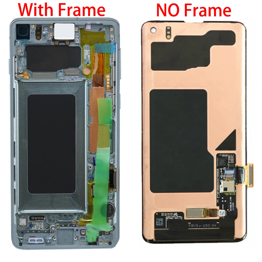 Оригинальный ЖК-дисплей с рамкой в горошек S10 для Samsung Galaxy S10, G973, G9730, G973F, дисплей с сенсорным экраном, дигитайзер в сборе, замена