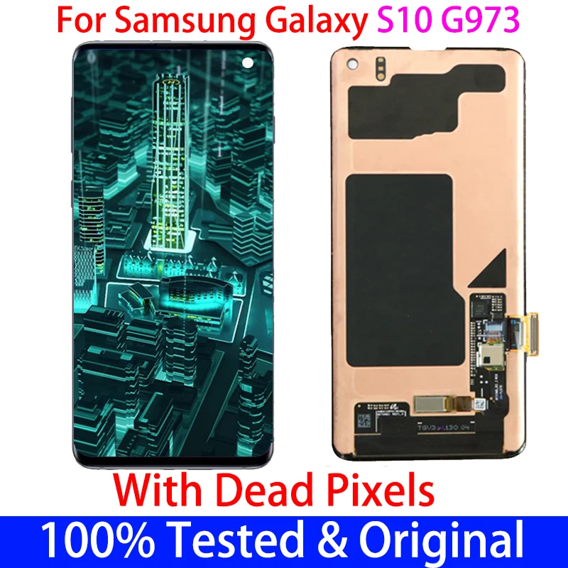 Оригинальный ЖК-дисплей с рамкой в горошек S10 для Samsung Galaxy S10 G973 G9730