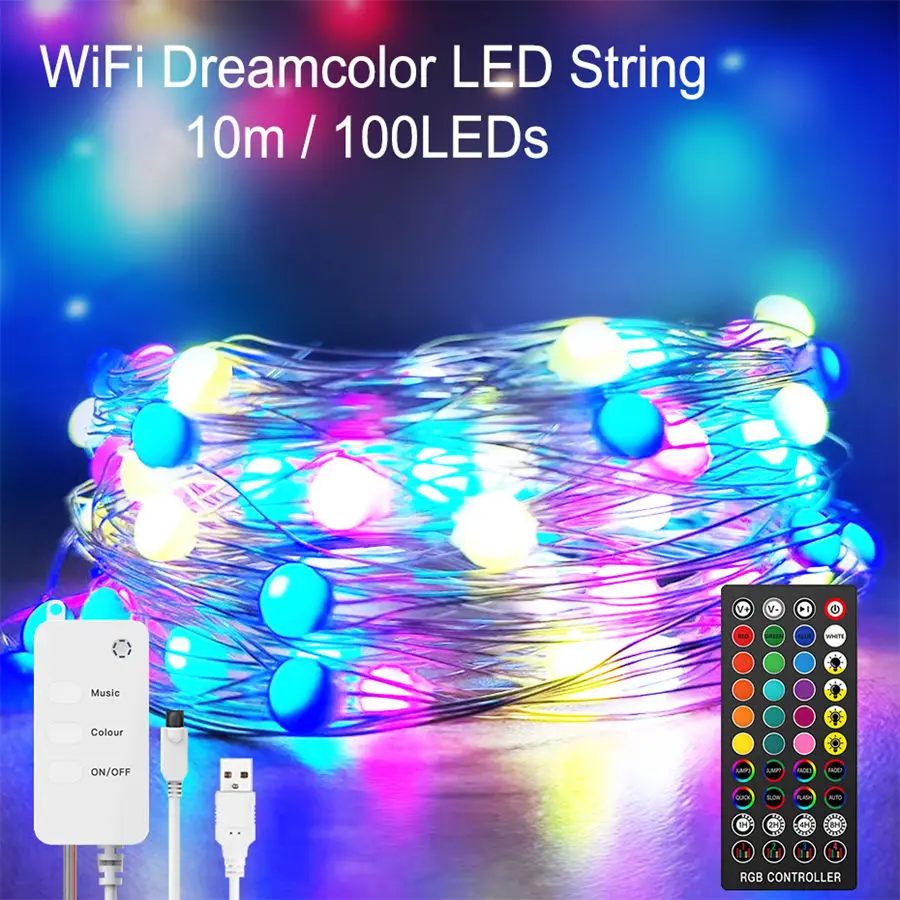 【 40 пульта дистанционного управления control】RGBICСветодиодный гирлянда имеет более 16 цветов света, 8 видов режимов освещения, 4 уровня яркости, 4 режима таймера, 4 режима воспроизведения музыки, чтобы удовлетворить ваши потребности в использовании