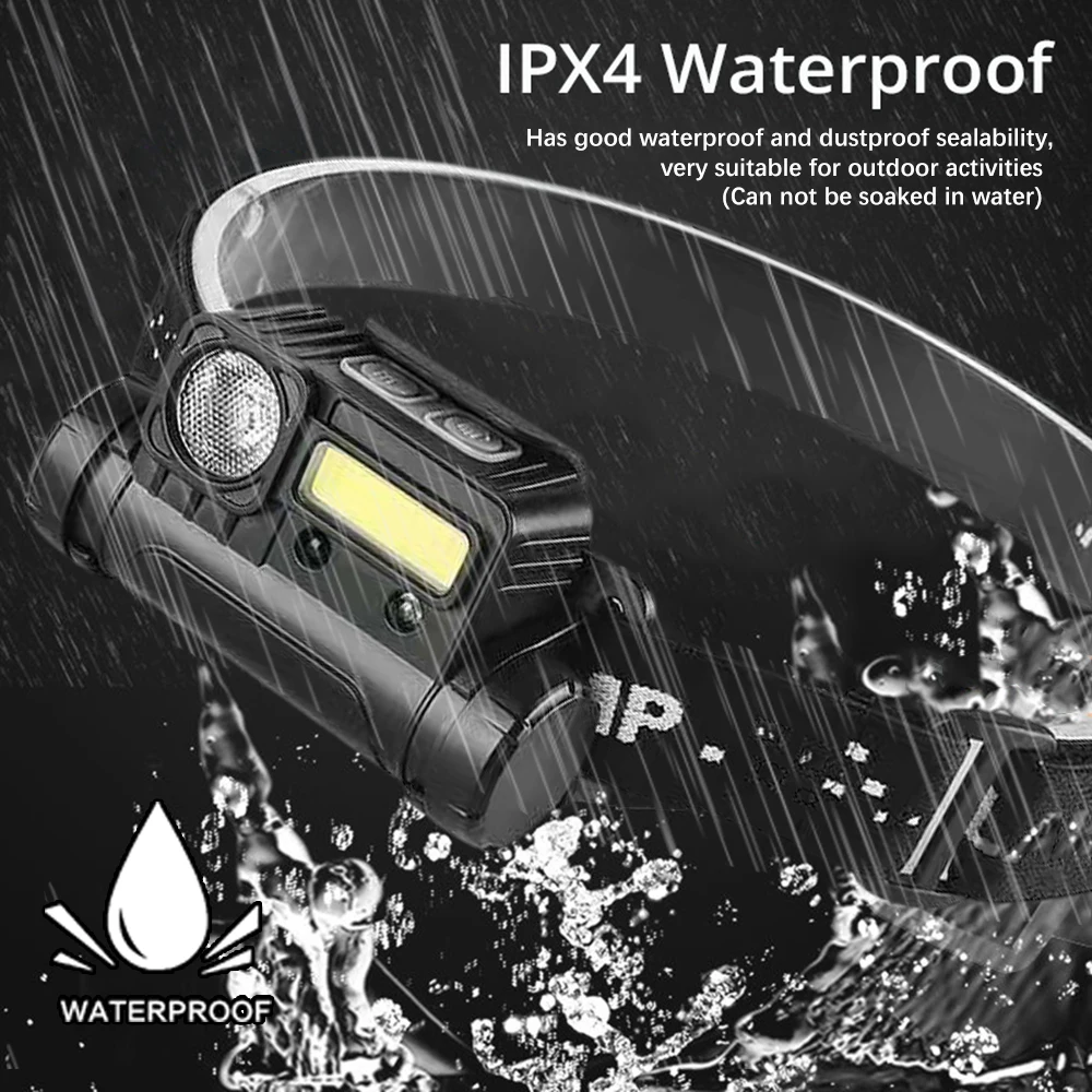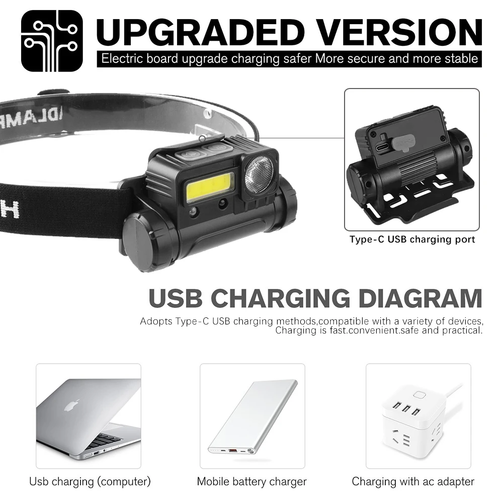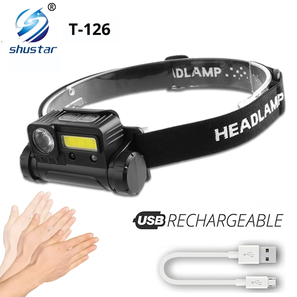Суперъяркий COB + светодиодный налобный фонарь с боковым магнитом, Головной фонарь с зарядкой от USB, водонепроницаемый мини-фонарь для рыбалки