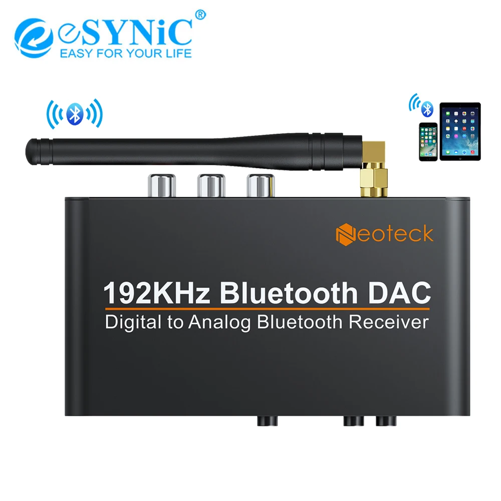 ESYNiC Преобразователь ЦАП 192 кГц беспроводной Bluetooth-беспроводной приемник V5.0 беспроводной ЦАП APT-X с регулятором громкости