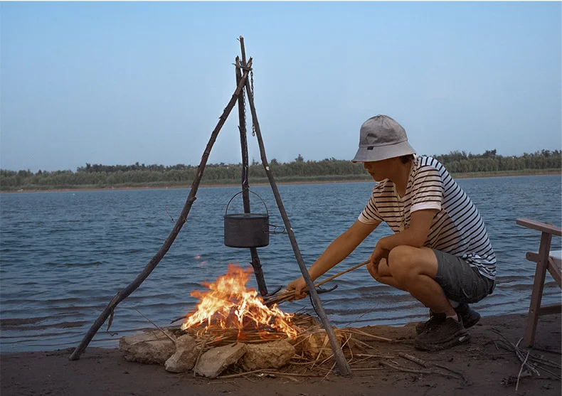 Открытый Кемпинг портативный треугольный подвесной горшок кронштейн для кемпинга стойка для барбекю веточный инструмент многофункциональный крючок для пикника