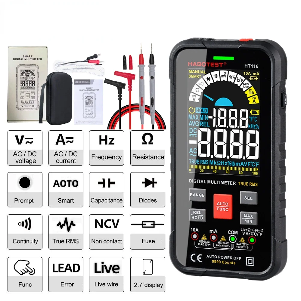 Профессиональный цифровой мультиметр 9999 отсчетов Автоматический диапазон умный мультиметр 6001000 в Ом Гц Емкость измеритель напряжения AC DC тестер