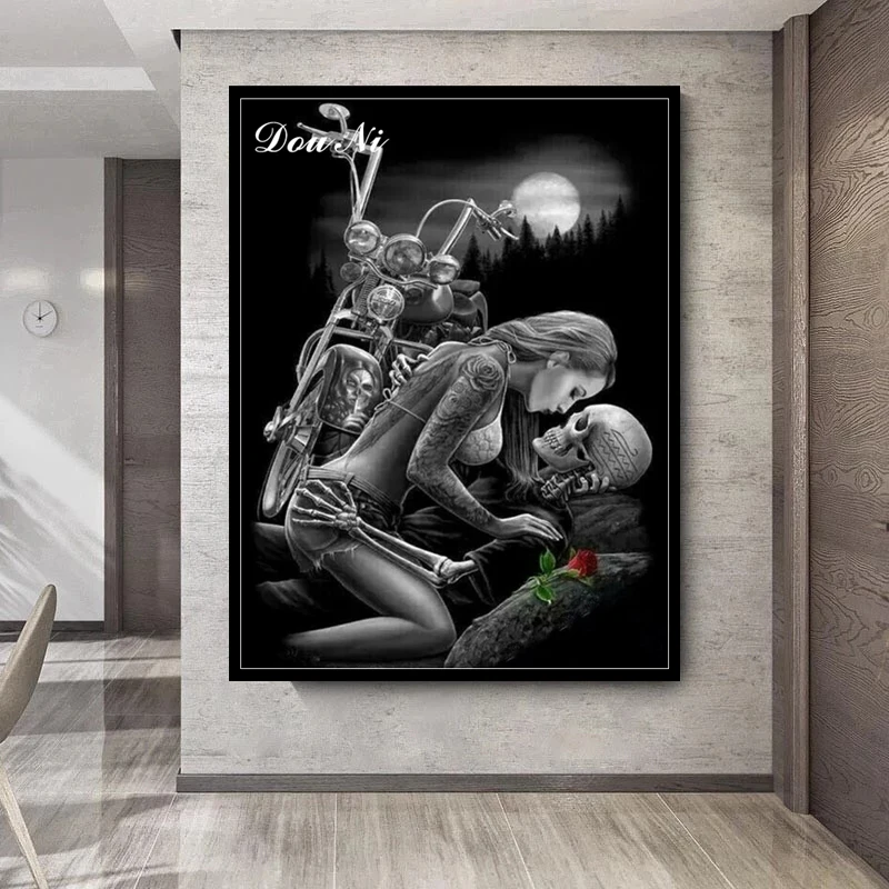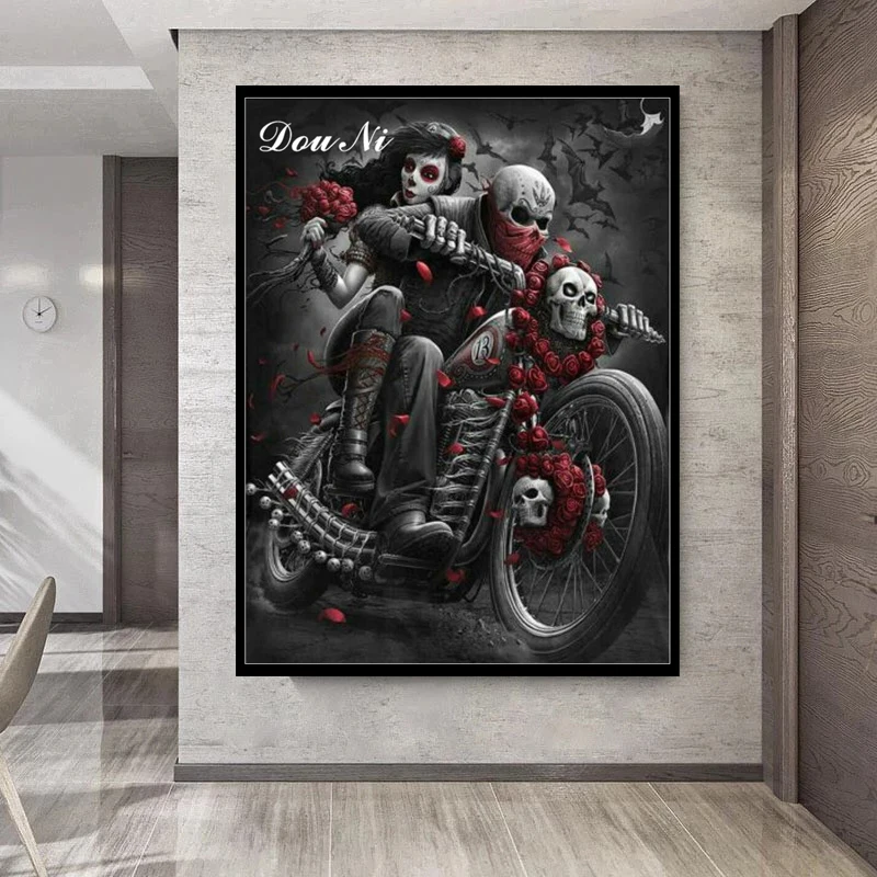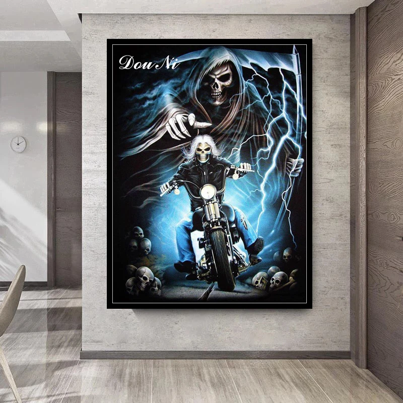 Алмазная вышивка Череп, картина с мотивом ужасов, вышивка крестиком, мотоциклетная картина, декор для стен, мозаика из страз