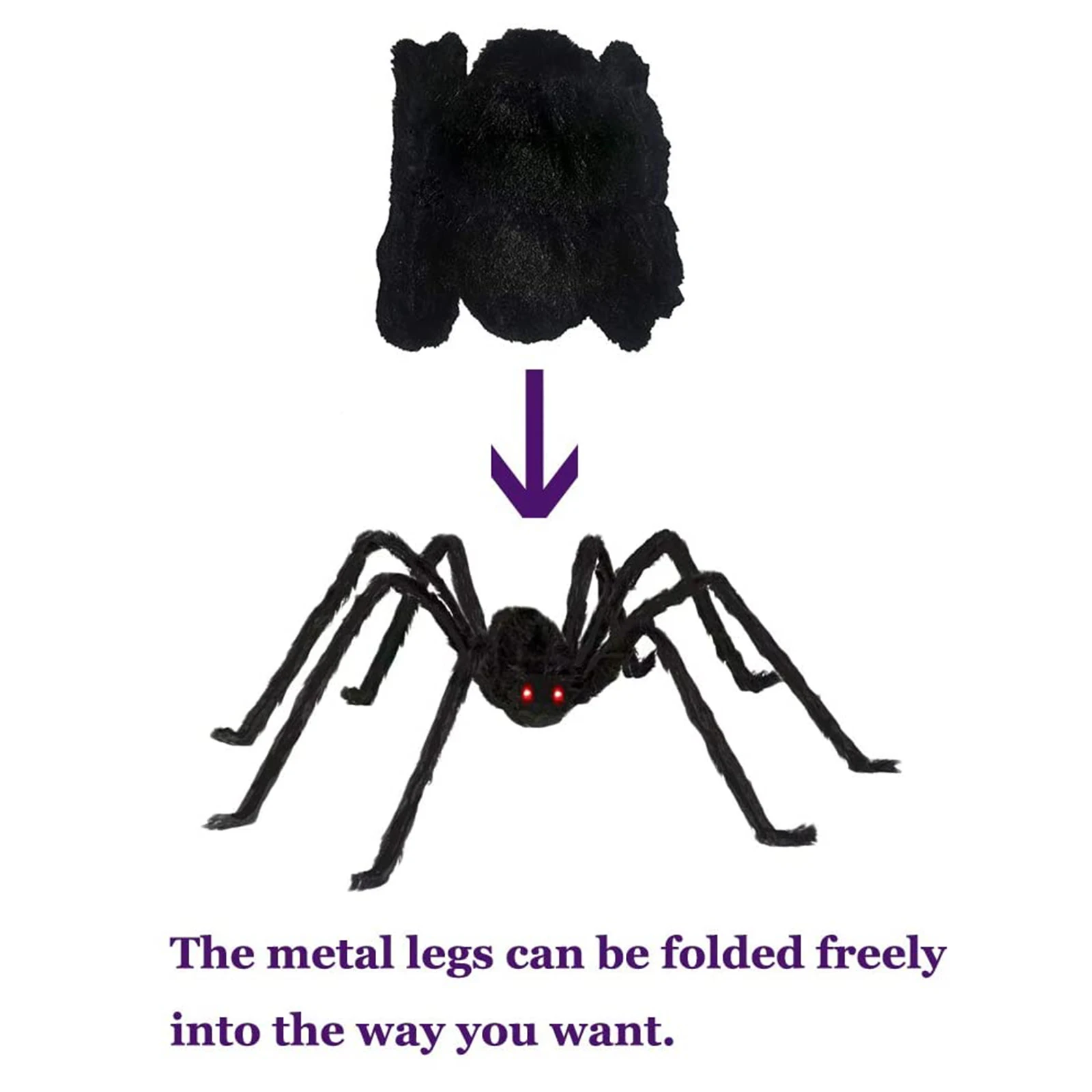 Хэллоуин паук черный и волосатый-гигантский страшный дом/комната/бар/в помещении/сад/уличный декор, шалость пушистая плюшевая игрушка, большой жуткий реквизит для косплея с привидениями вечерние, праздника, окна стены, DIYОсобенность:Высокое качество: черные пауки на Хэллоуин изготовлены из высококачественного пластика и железной проволоки, которые нелегко повредить. Паучьи ноги можно согнуть. Вы можете придать им желаемую форму в соответствии с вашими предпочтениями. Волосы-пауки изготовлены из высококачественного черного и яркого материала, более гладкого на ощупь.Предметы «Паук на Хэллоуин»: черные волосы и красные глаза реалистичны и выглядят очень страшно. Когда наступает Хэллоуин, положите его во двор, чтобы добавить ужаса.Способ применения: Откройте посылка ВКУ и достаньте одну, затем согните ногу паука в нужную вам форму и поместите в сад.Украшения для Хэллоуина: черных пауков можно использовать в качестве прекрасного украшения для сада Хэллоуина. Реалистичный внешний вид сделает вас более впечатленными на Хэллоуин.Идеальное украшение для Хэллоуина: черный паук-это классический предмет для Хэллоуина. Это также прекрасный подарок для вашей семьи или друзей.Спецификация:Название: имитация паука на Хэллоуин, декоративный реквизит, плюшевый паук черного цвета, паук принадлежности для фестиваля призраковМатериал: пух, железная проволока, пена, хлопокРазмер: 30 см (125 дюйма)/50 см (150 дюйма)/70 см (дюйма)/90 см (дюйма)/см (дюйма)Цвет: черныйПрименение: бары, торговые центры, дома с привидениями, различные мероприятия на Хэллоуин и т. д.Примечание:Из-за различий в мониторах и световых эффектах фактический цвет изделия может немного отличаться от цвета, показанного на фотографиях. Спасибо!Возможны отклонения в 1-2 см из-за измерений вручную.