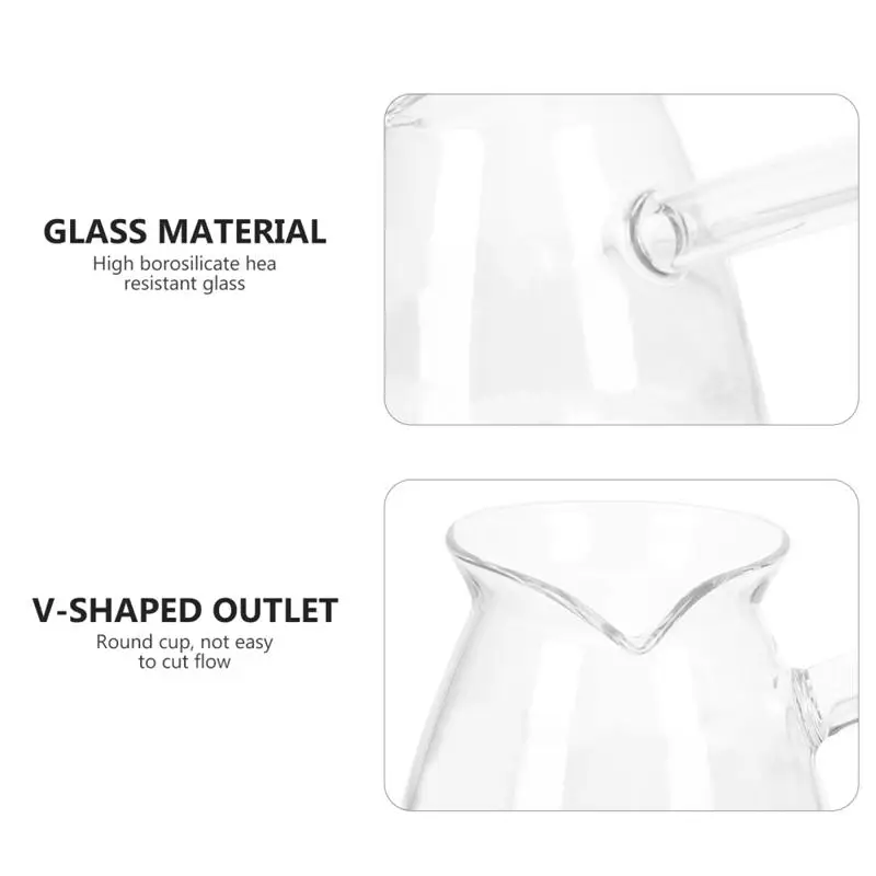 -Цвет: прозрачный -Материал: стекло -Размер (450 мл): около12,50x11,00x11,00 см/4,91x4,32x4,32 дюйма -V-образный выход, круглая чашка, нелегко резать поток. -Утолщенная ручка чашки, боковая ручка, удобно держать. -Сделано искусственно, прозрачно, как хрусталь. -Боросиликатное Термостойкое стекло, выдерживает от-30 ℃ до 100 ℃. -Можно сразу обжечь открытым огнем, деформировать.1 х чайник