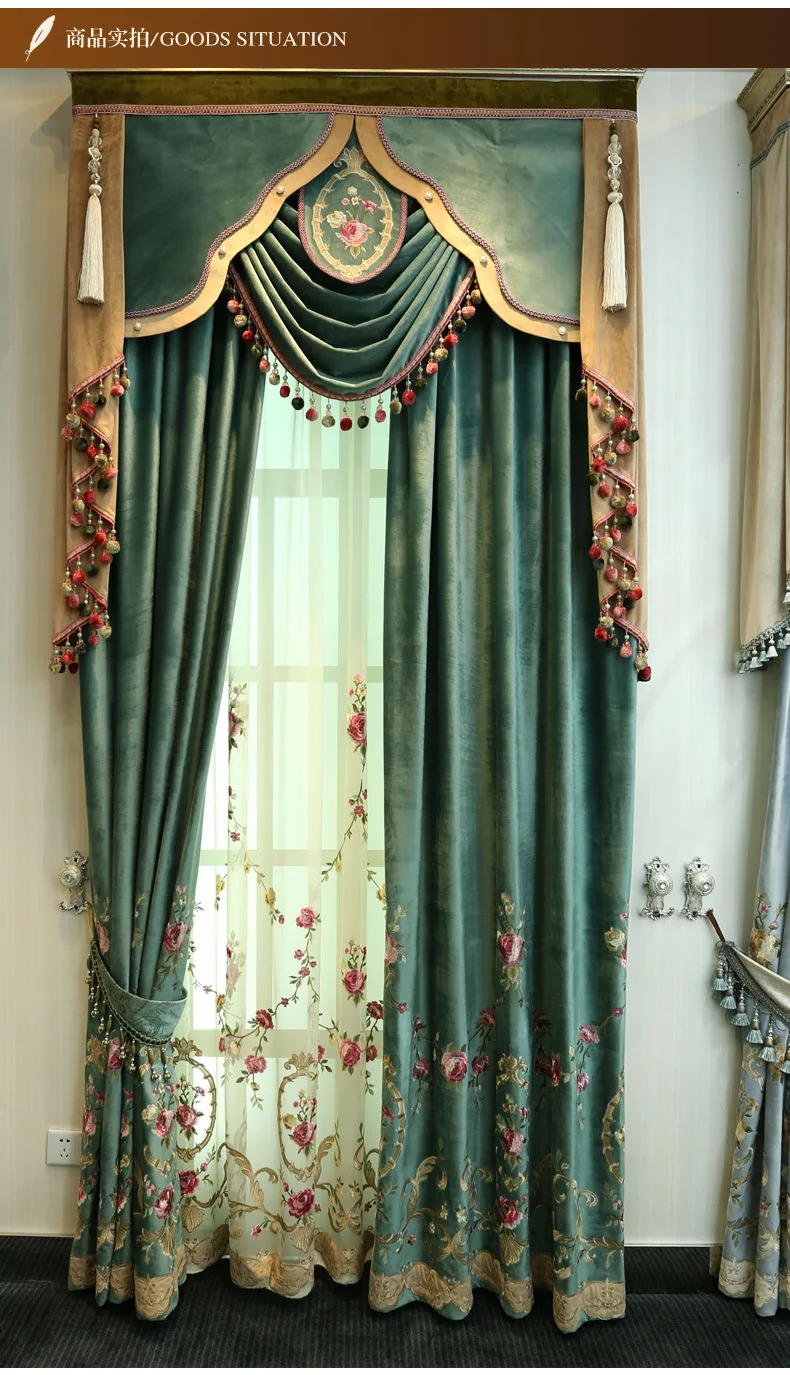 Роскошные зеленые бархатные занавески высокого качества с вышивкой ...
