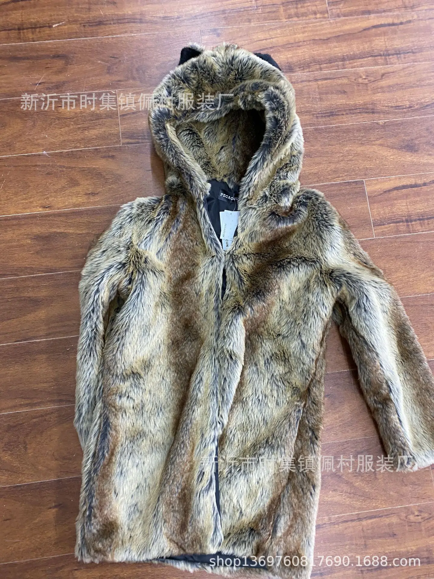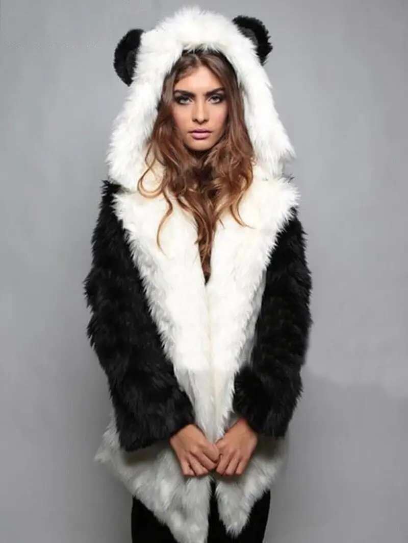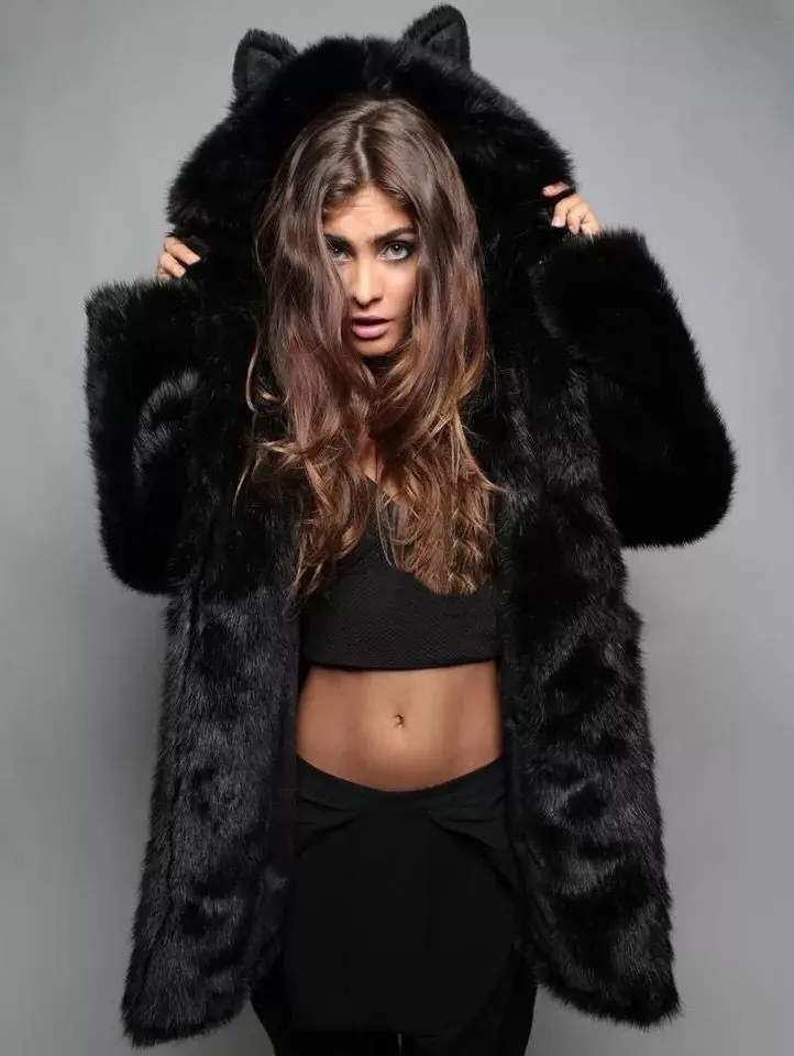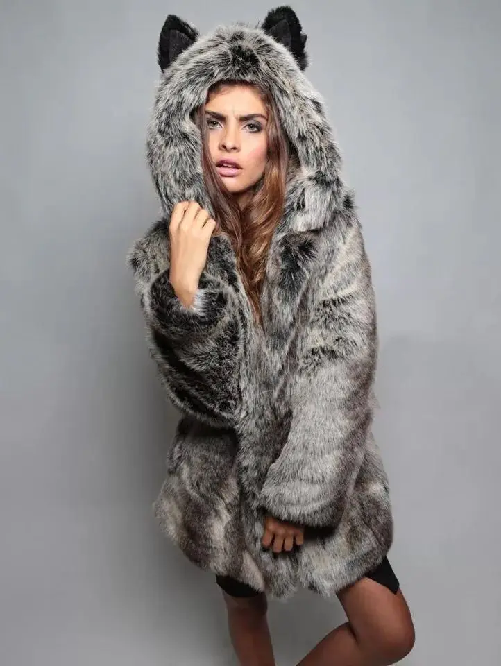 Пальто как волк из искусственного лисьего меха с капюшоном в виде ушей