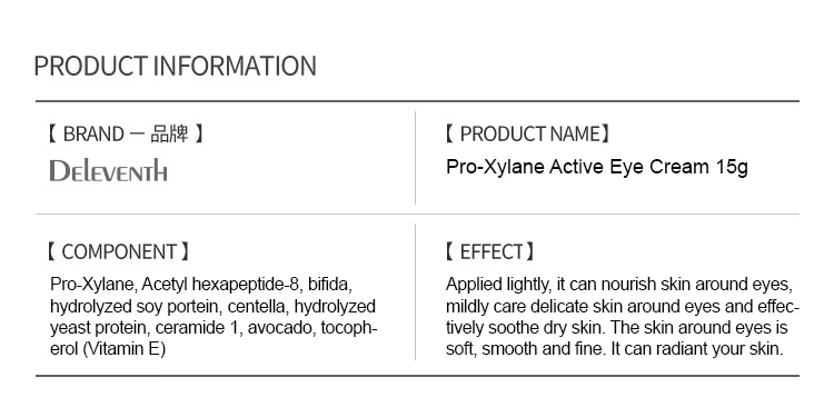 ▶Название продукта: активный крем для глаз Pro-xyane▶Состав: про-ксилан, ацетил hexapeptide-8, бифида, гидролизованный соевый портин, центелла, гидролизованный дрожжевой белок, Церамид 1, авокадо, токоферол (витамин E)