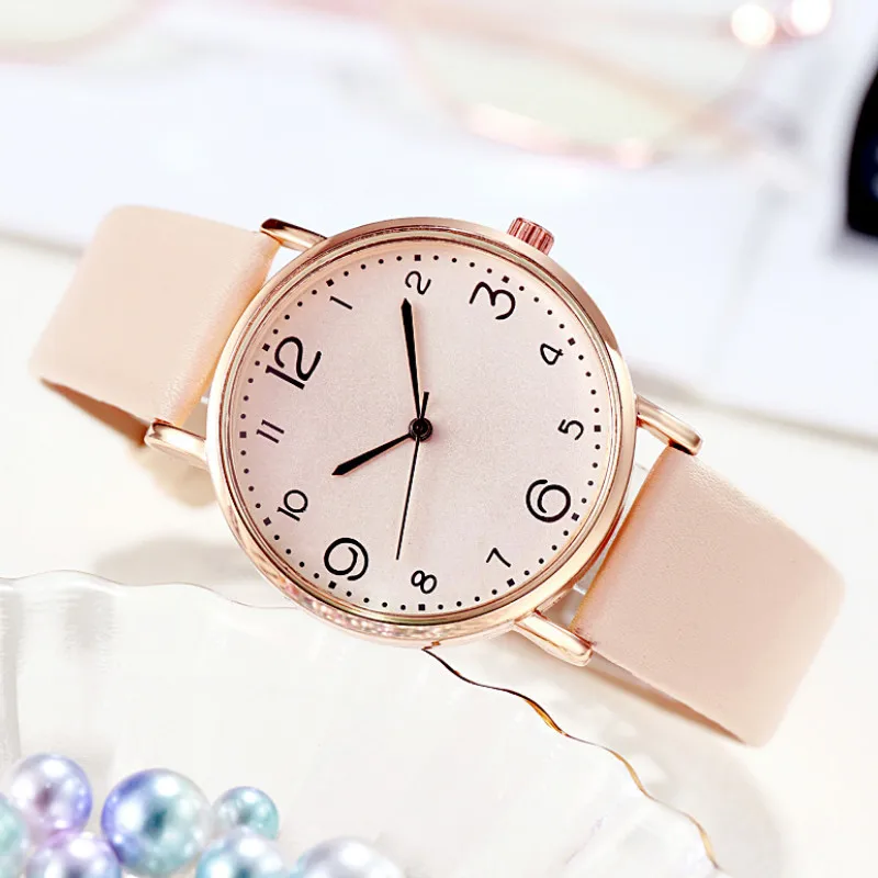 Модные Простые креативные повседневные кварцевые часы женские часы Механизм: кварцевыйЧехол Материал: сплавТип пряжки: ПряжкаГлубина водонепроницаемости: Нет водонепроницаемостиСтиль: Модный, Повседневный, модныйМатериал ремешка: кожаМатериал пряжки часов: нержавеющая стальШирина ремешка: 18 ммДлина ремешка: 23,5 смТолщина циферблата: 8 ммДиаметр циферблата: 36 ммМатериал зеркала: стеклоФорма поверхности: круглаяВес: 28 гТип дисплея: указательПосылка включает в себя: часы-1 шт.