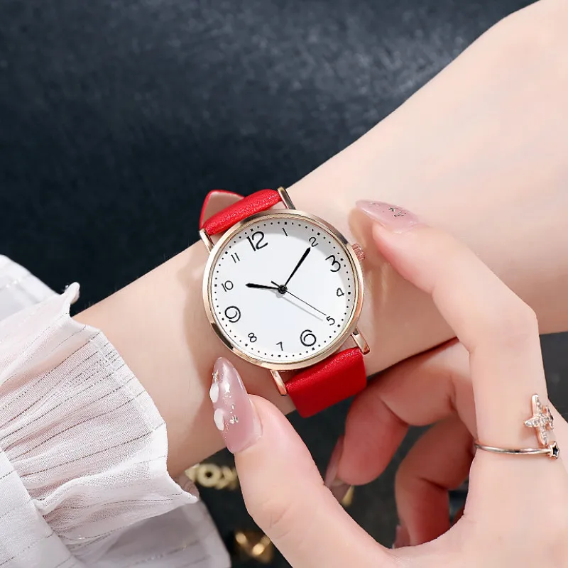 Модные женские часы с кожаным ремешком, простые женские часы, кварц...