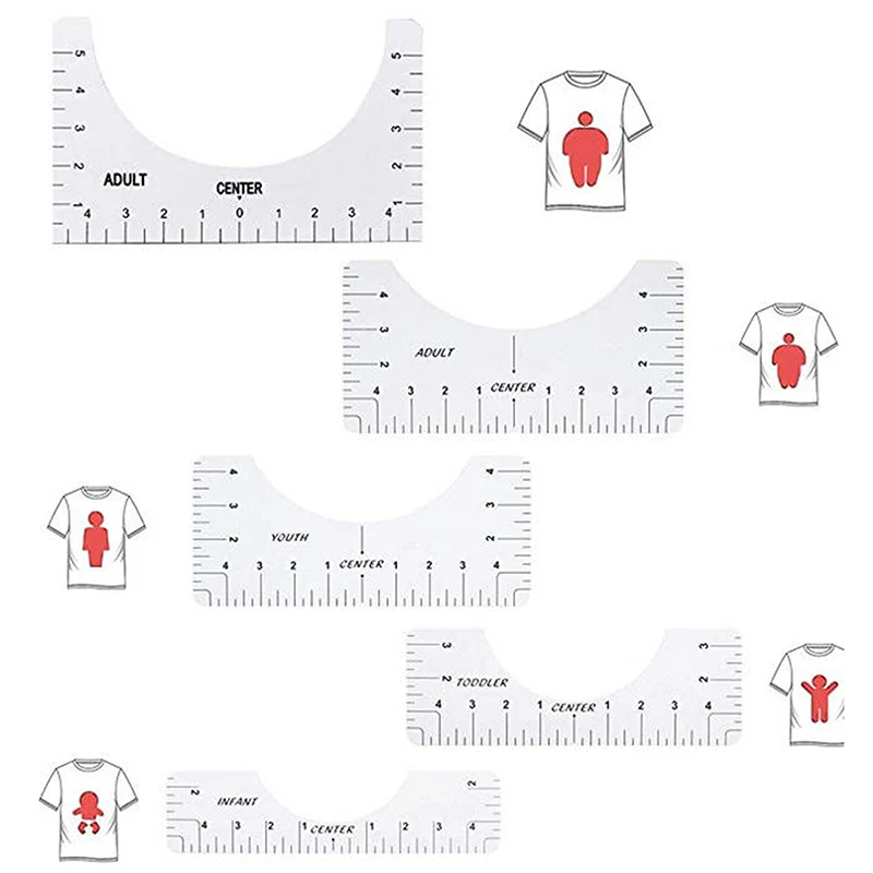 Линейка для выравнивания футболки, 5 шт.компл., для руководства, линейка для измерения футболки с таблицей размеров, ручная работа, чертежная инструмент