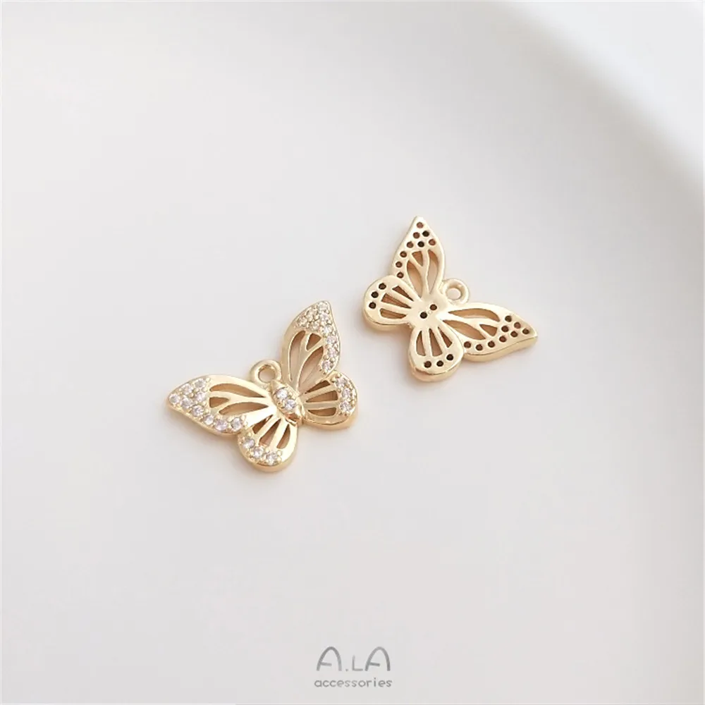 Подвеска в виде бабочки, стрекозы, 14 карат, золото крошечный Циркон пробы, браслет ручной работы, кулон, серьги, подвеска