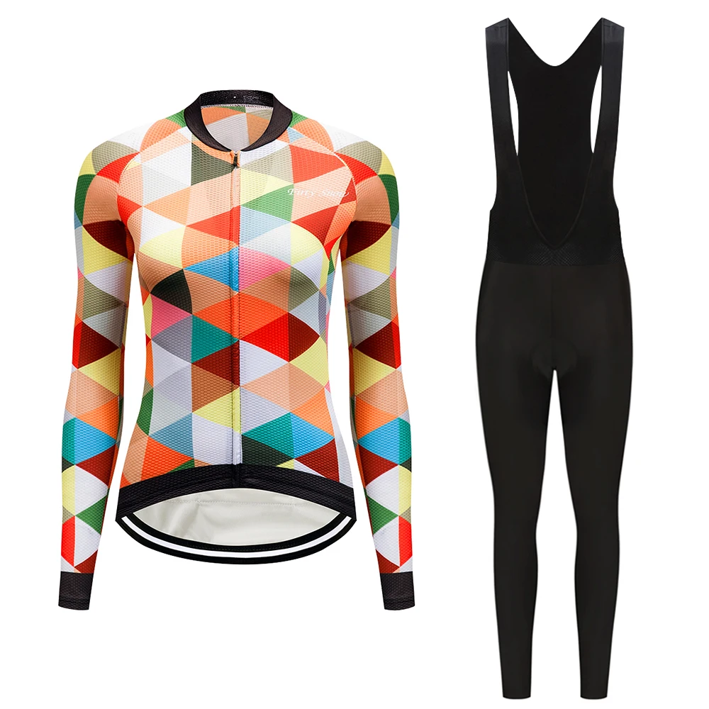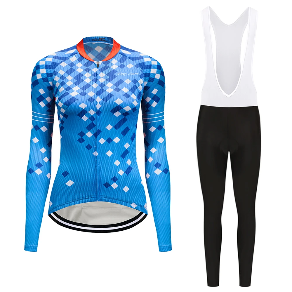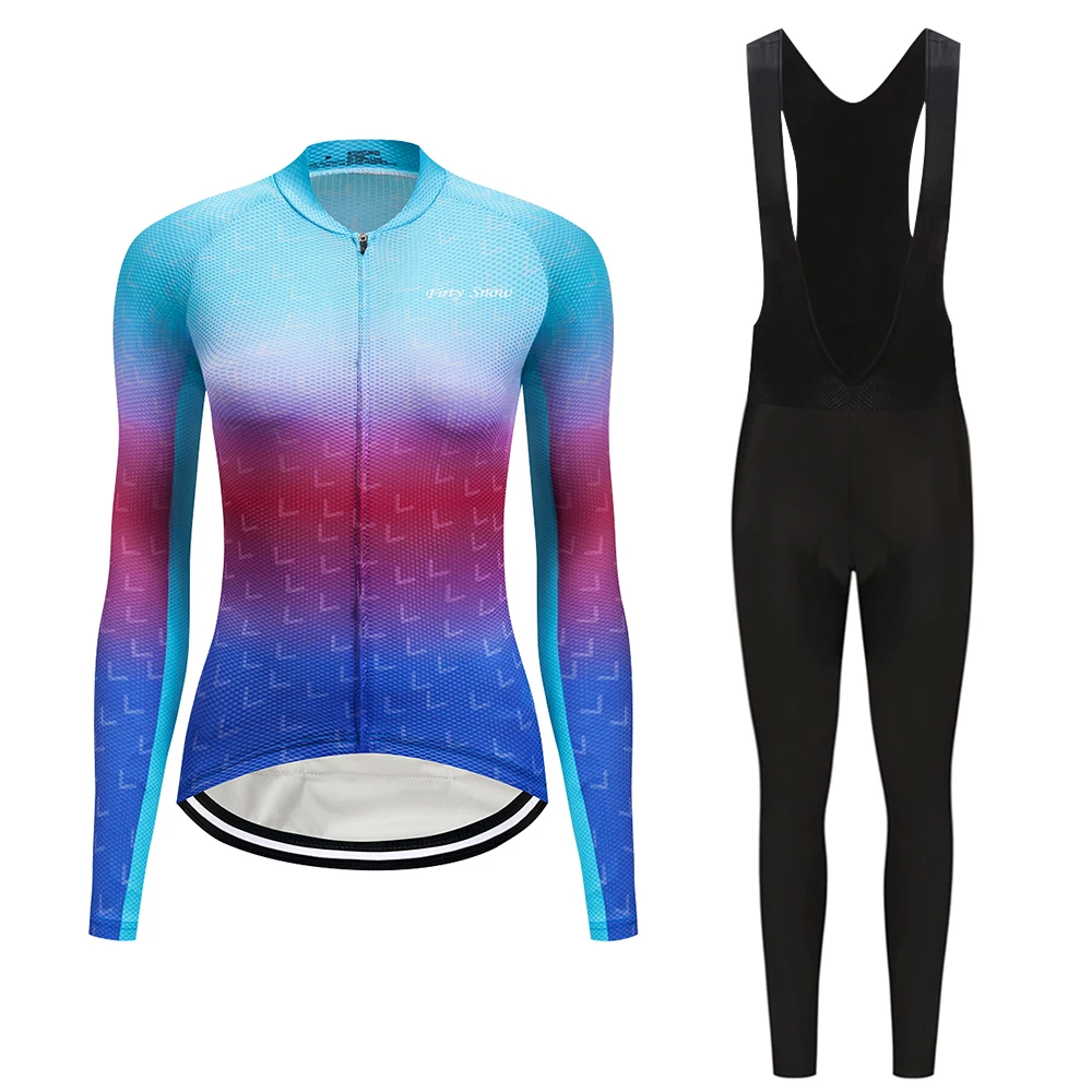 Женская велосипедная одежда с длинным рукавом, топ с нагрудником и штаны, одежда для занятий на открытом воздухе, триатлона, горного велосипеда, велосипедная Джерси, комплект велосипедной командной одежды для горного велосипеда