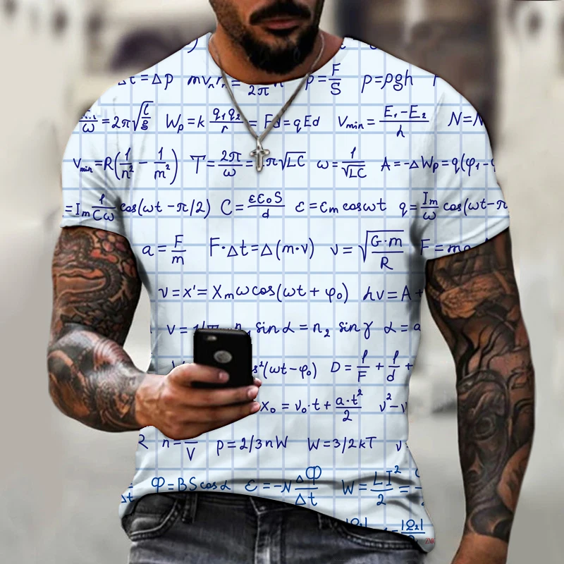 Мужская и женская футболка с рисунком математической формулы топ с коротким рукавом Футболка с 3D принтом Мужская футболка с круглым вырезом Повседневный Топ