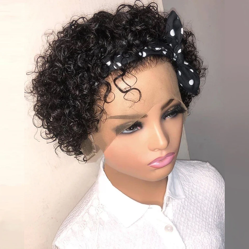 Вьющиеся стрижка Пикси парик Синтетические волосы на кружеве челове...