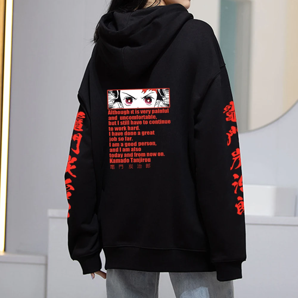 Толстовка с капюшоном для мужчин и женщин, Свитшот оверсайз с изображением рассекающего демонов, аниме, худи, уличная одежда в стиле Харадзюку, Kimetsu No Yaiba
