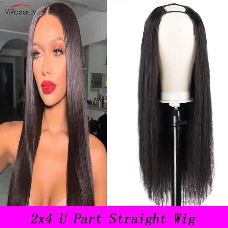 Бразильский парик, прямой U-образный парик, парик из человеческих волос 2x4 дюйма, натуральные машинные парики, прямой парик для женщин, человеческие волосы VIPbeauty