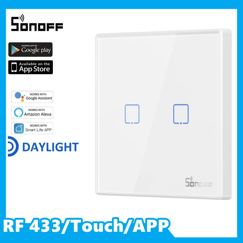 SONOFF T2 EU Smart RF 433APPсенсорное управление настенный светильник ключатель света 2 группы настенный сенсорный выключатель Управление работает с Alexa Google Home