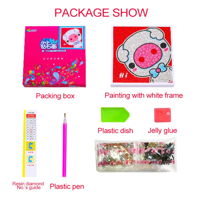 Посылка включает в себя: холст с алмазной росписью, Кристальные бриллианты, точечные сверлильные ручки, лоток и грязь. (Все необходимые аксессуары для алмазной окраски включены в комплект)