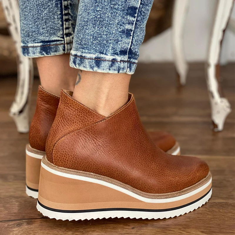 Женские ботинки из искусственной кожи, Винтажная обувь на платформе...