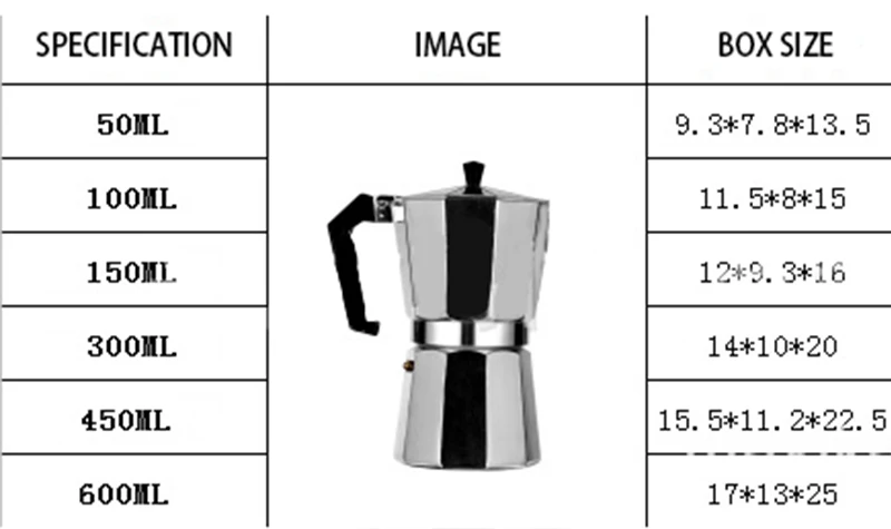 1. Кофейник мокко изготовлен из алюминиевого материала, устойчив к высокой температуре и падению, легко моется