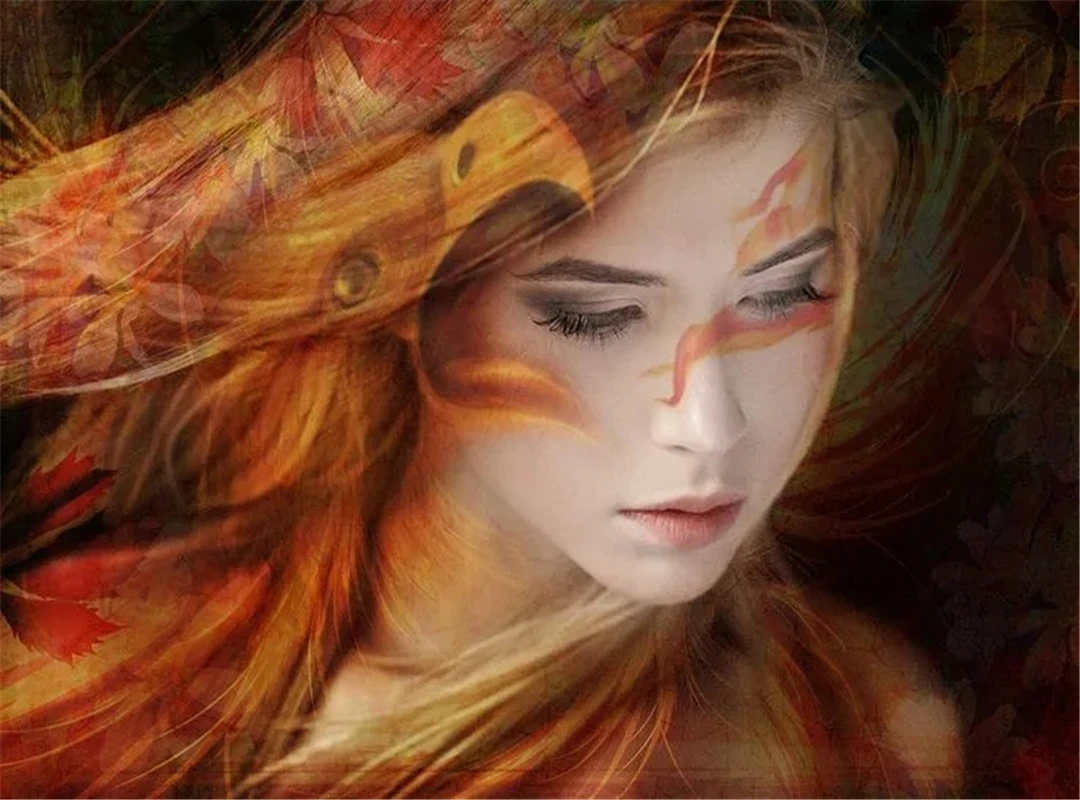 Алмазная живопись, Портрет женщины, живущей с волками в западных по...