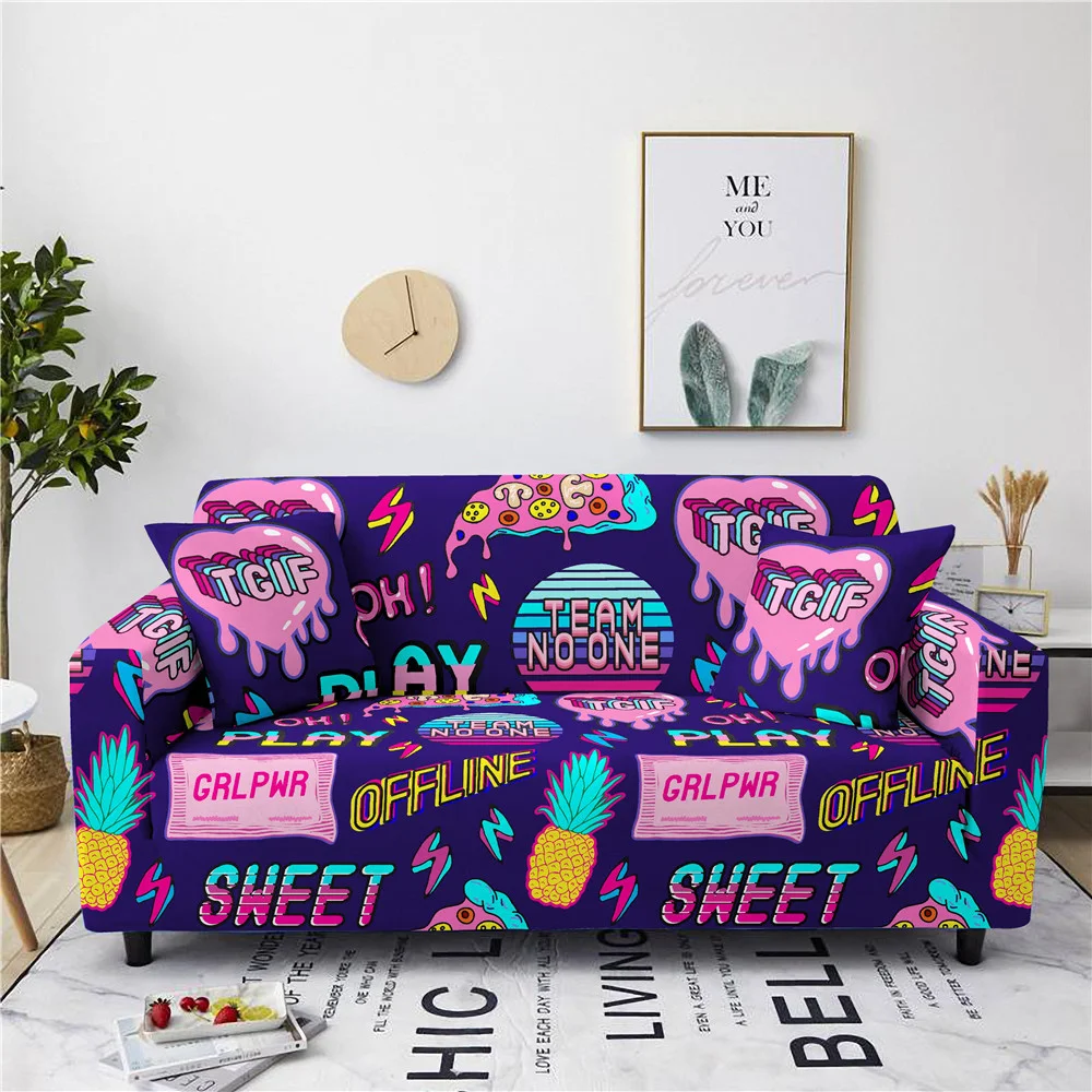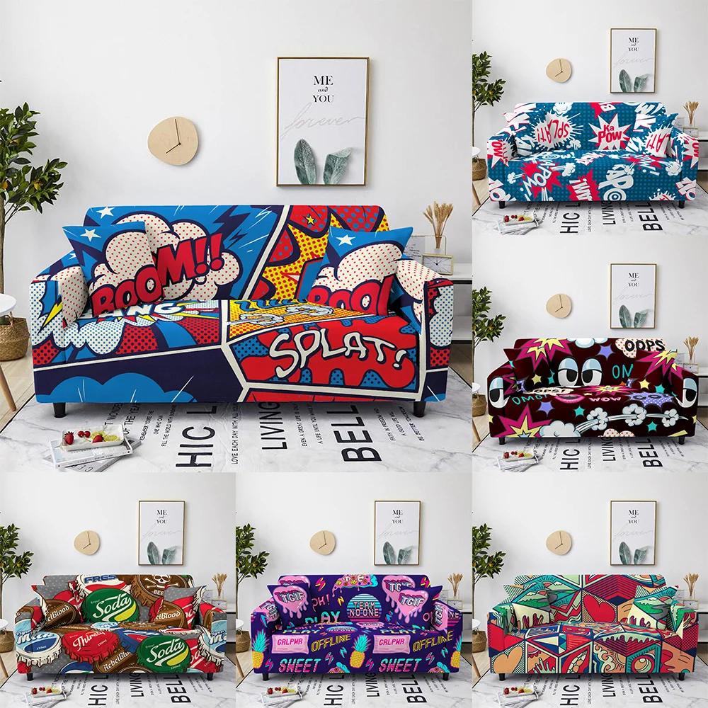 Чехол в стиле хип-хоп с мультяшным принтом, защитный эластичный чехол для дивана в гостиную, детский полноразмерный эластичный чехол для защиты от грязи