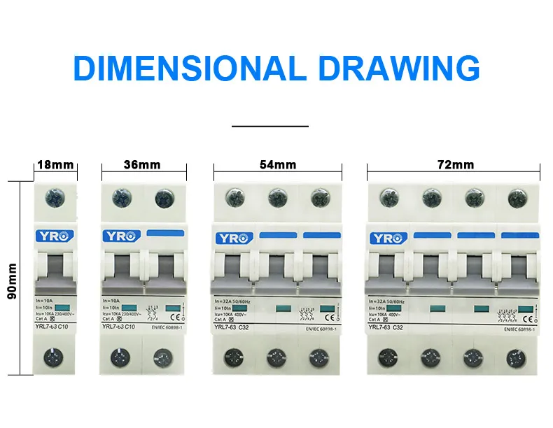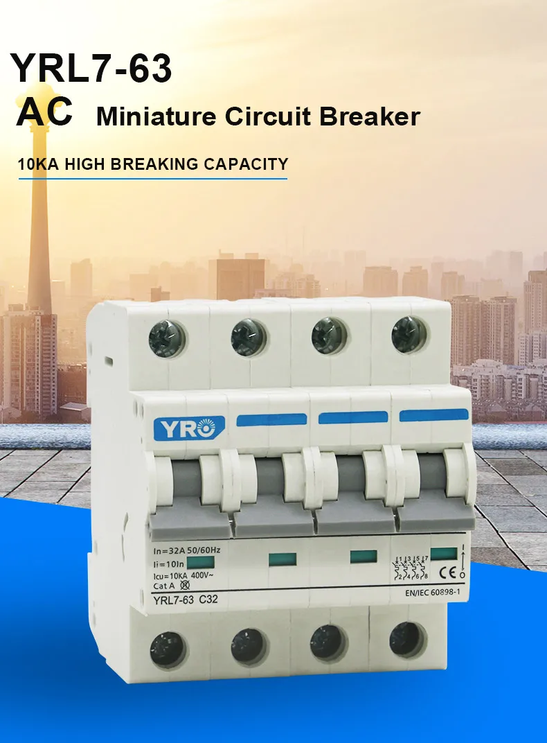 Мини-автоматический выключатель переменного тока 1P, MCB 6A 10A 16A 20A 25A 32A 40A 50A 63A, защитная пленка