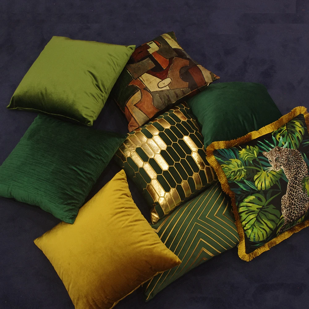 Бархатный Чехол на подушку с геометрическим узором, зеленый, золотой
