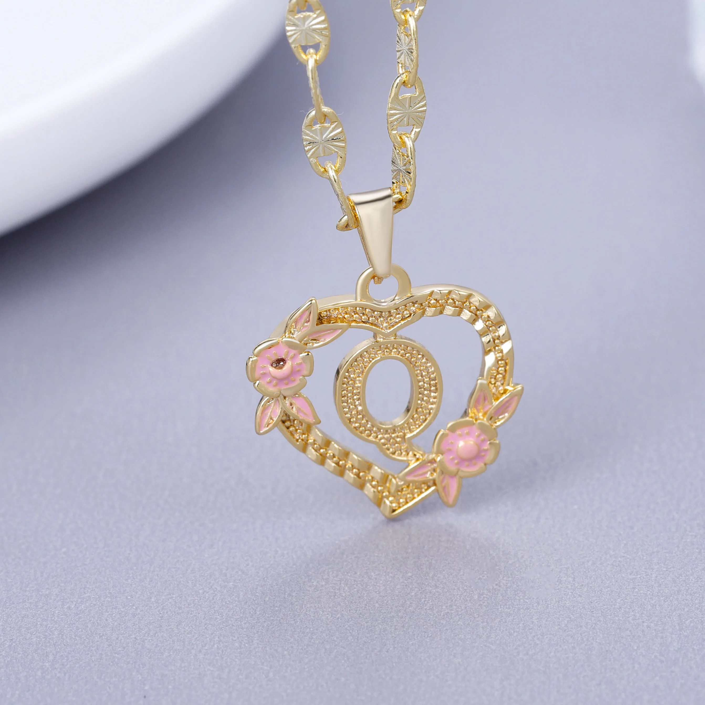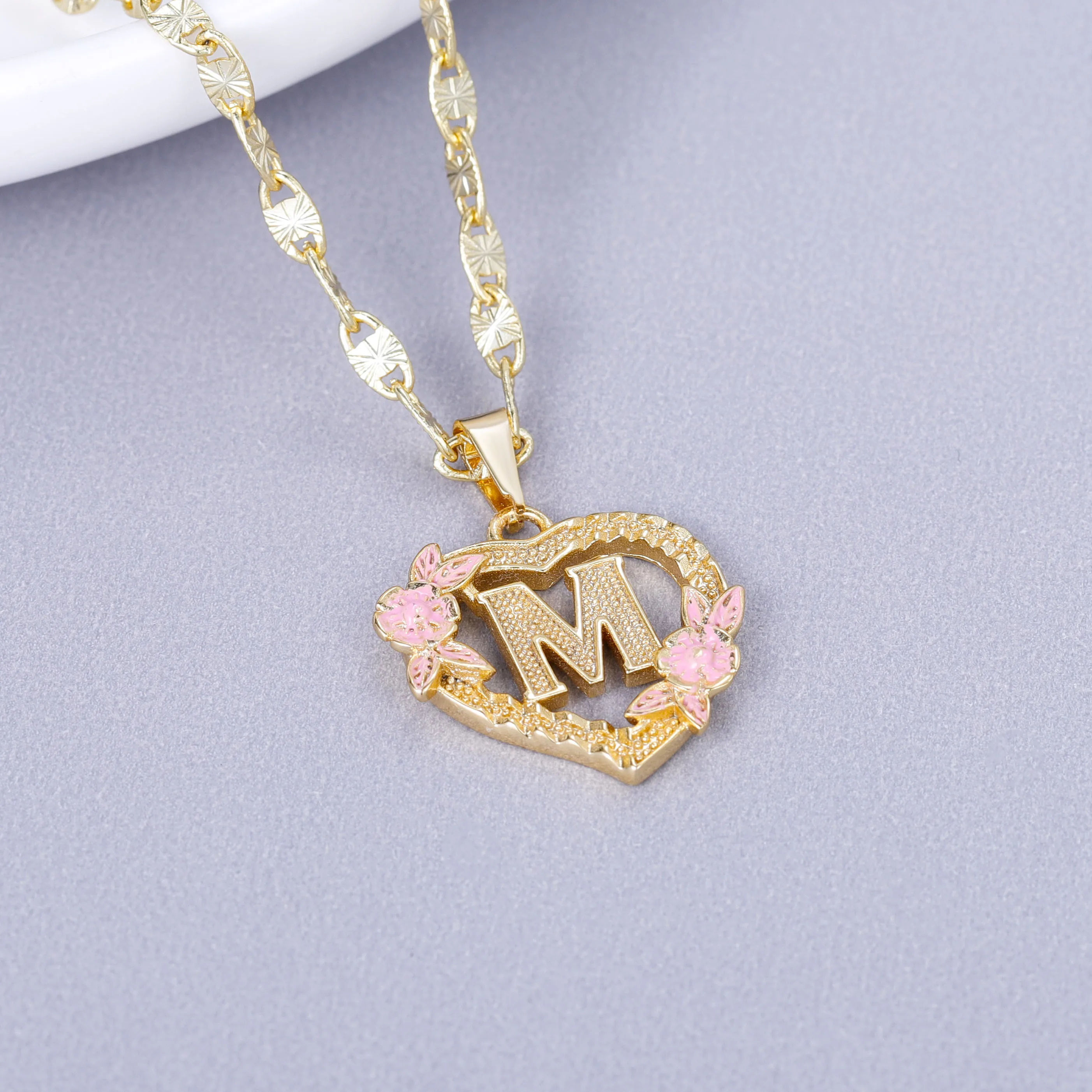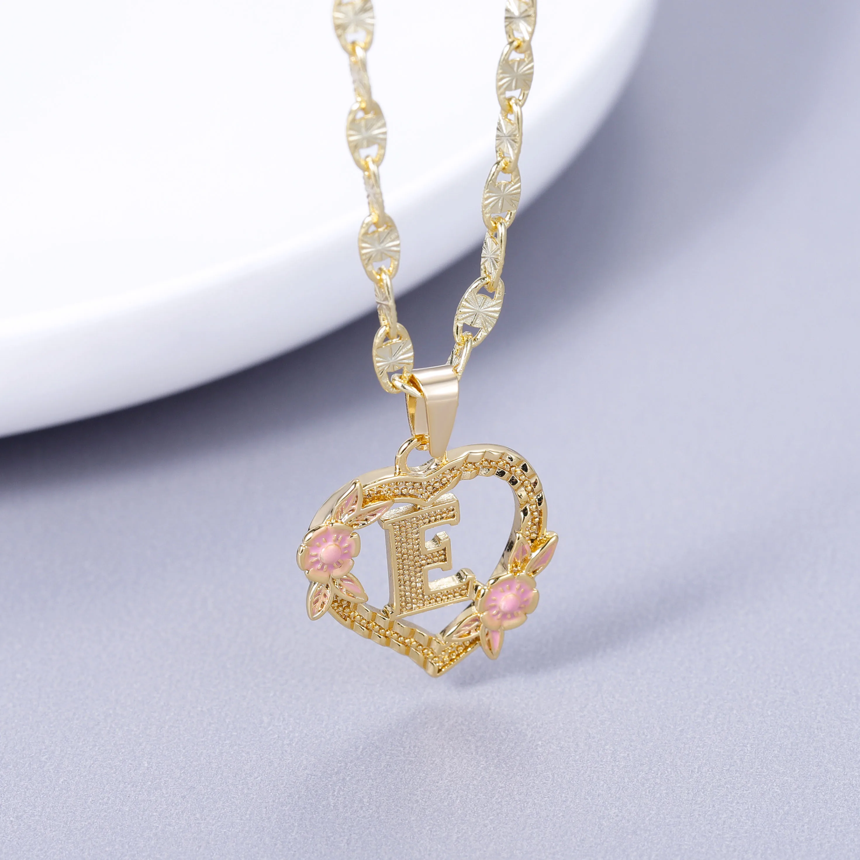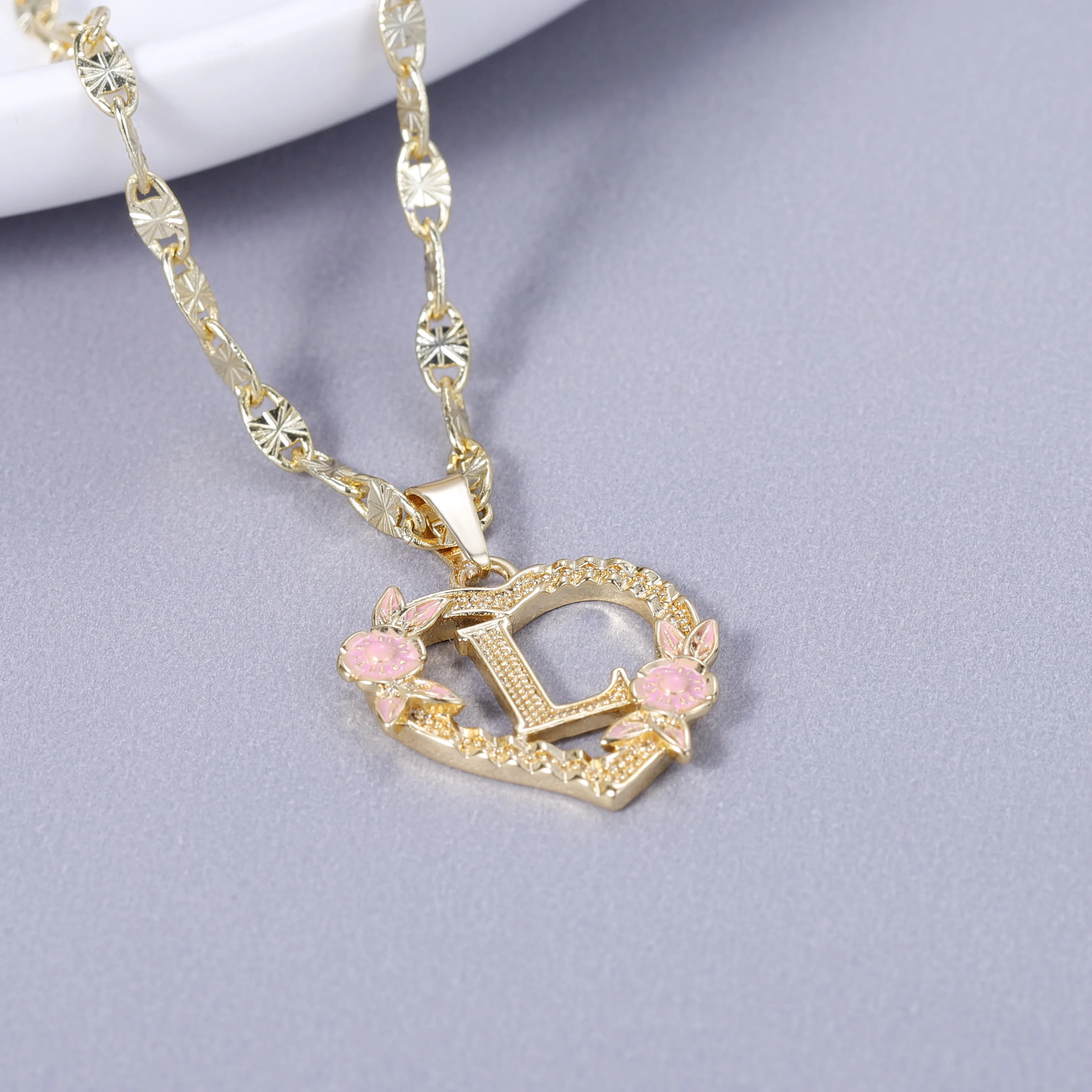 Позолоченная подвеска в форме сердца, цветка, инициала, буквы с цепочкой Фигаро 24 дюйма, 4 мм, ожерелье в форме сердца, подарок на день Святого Валентина