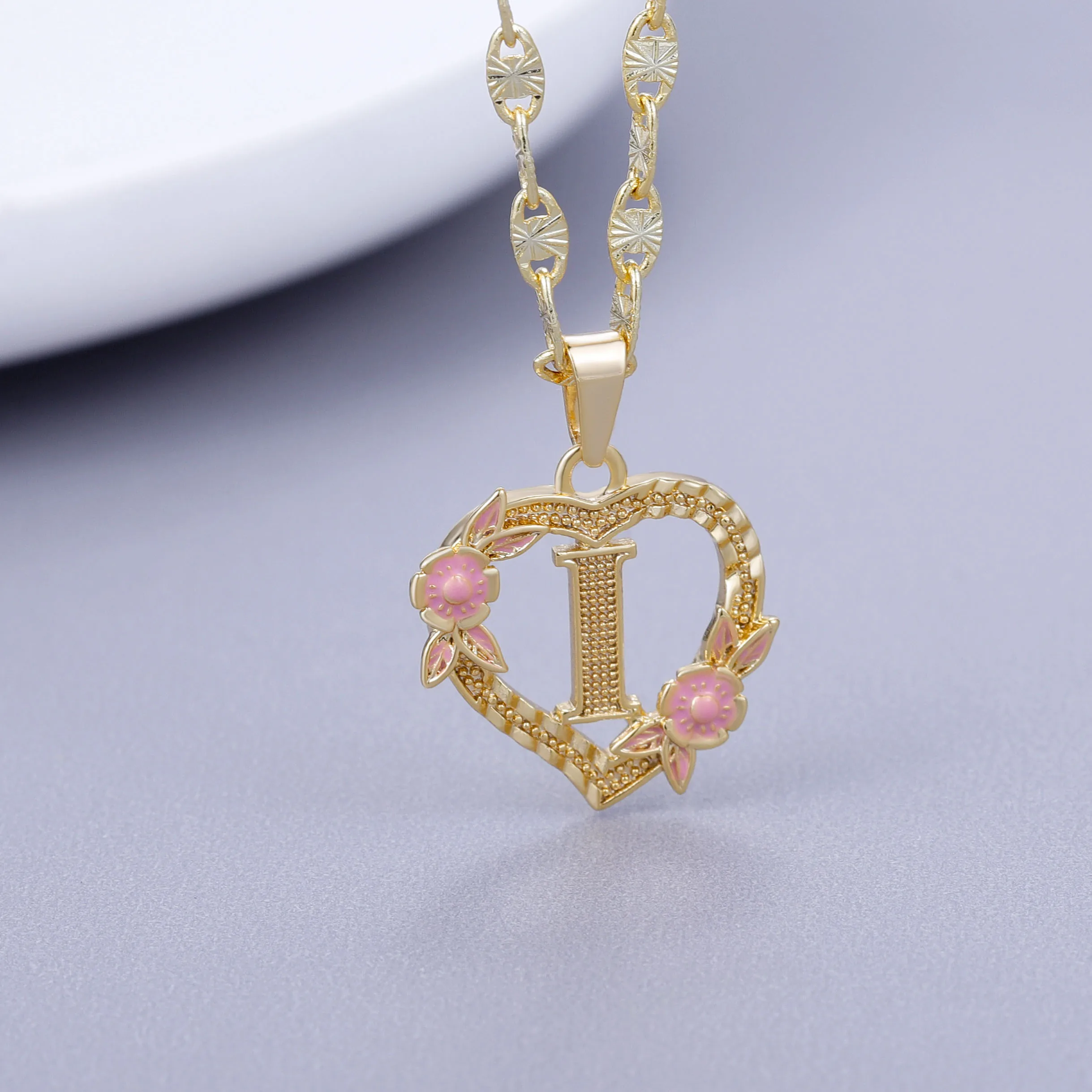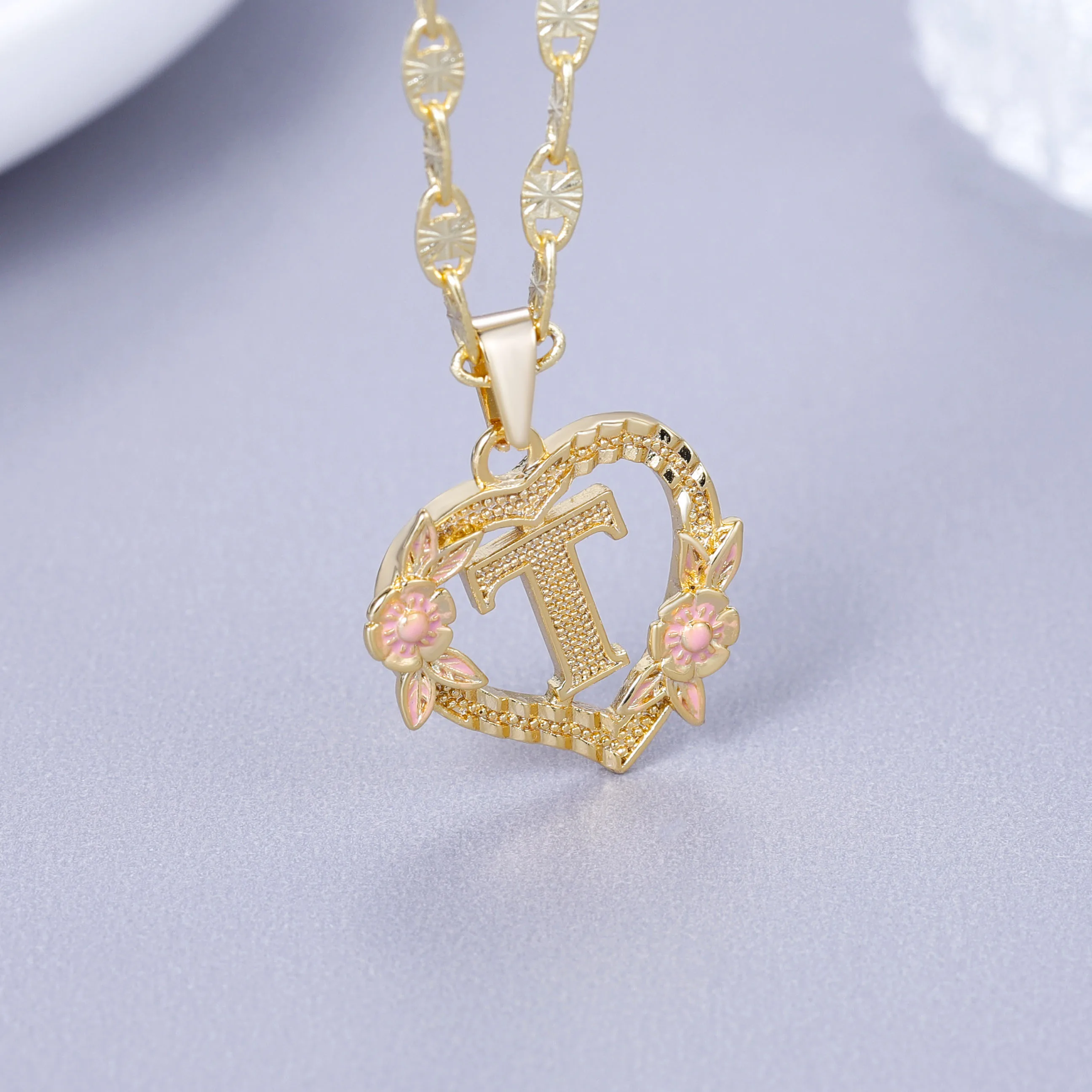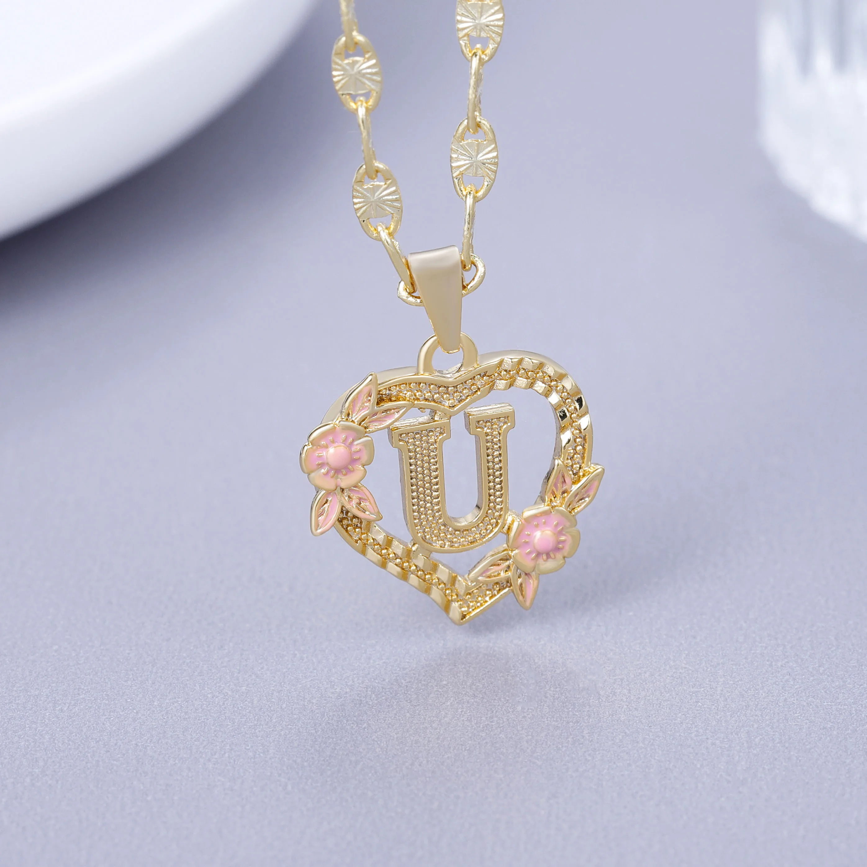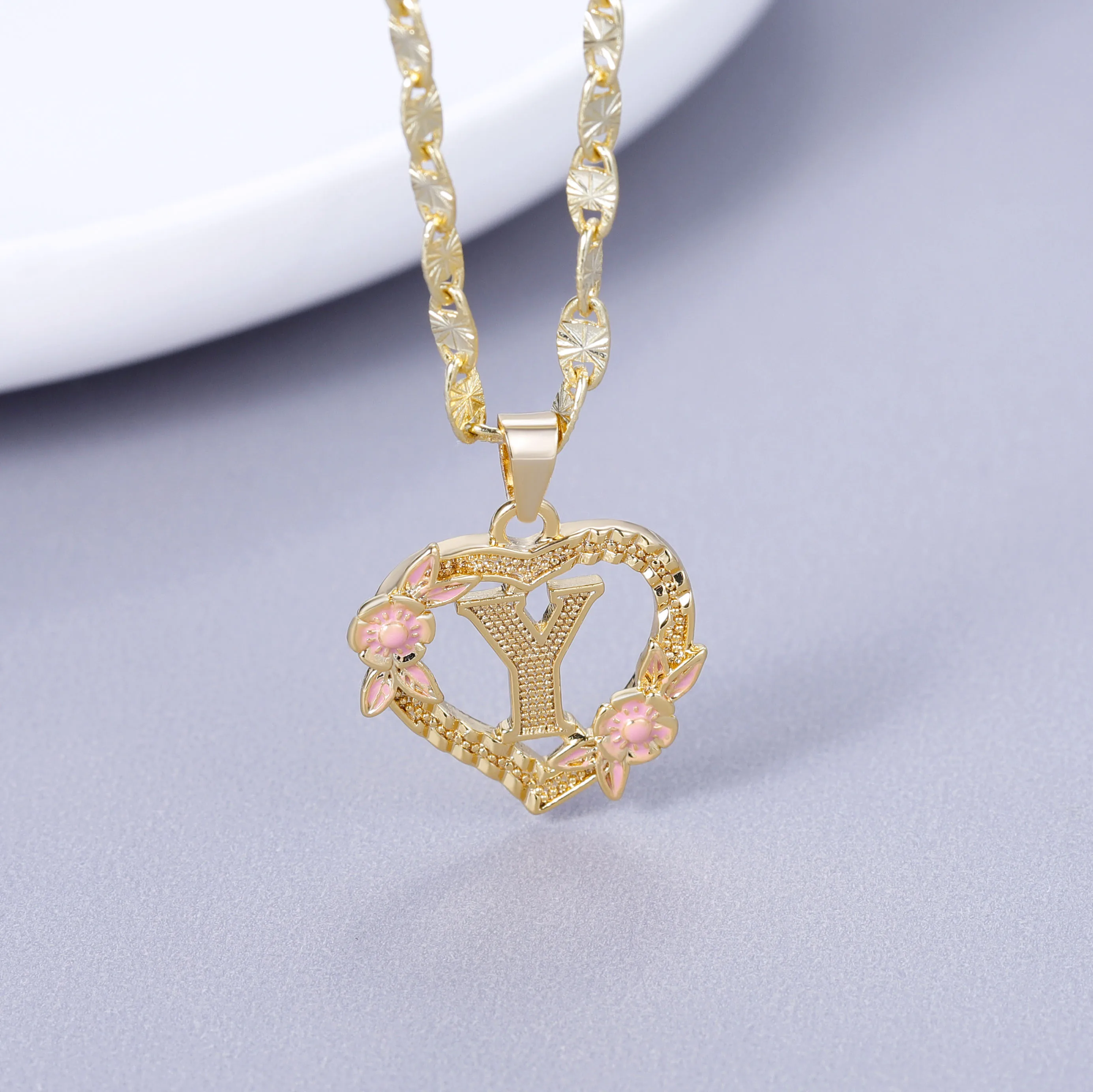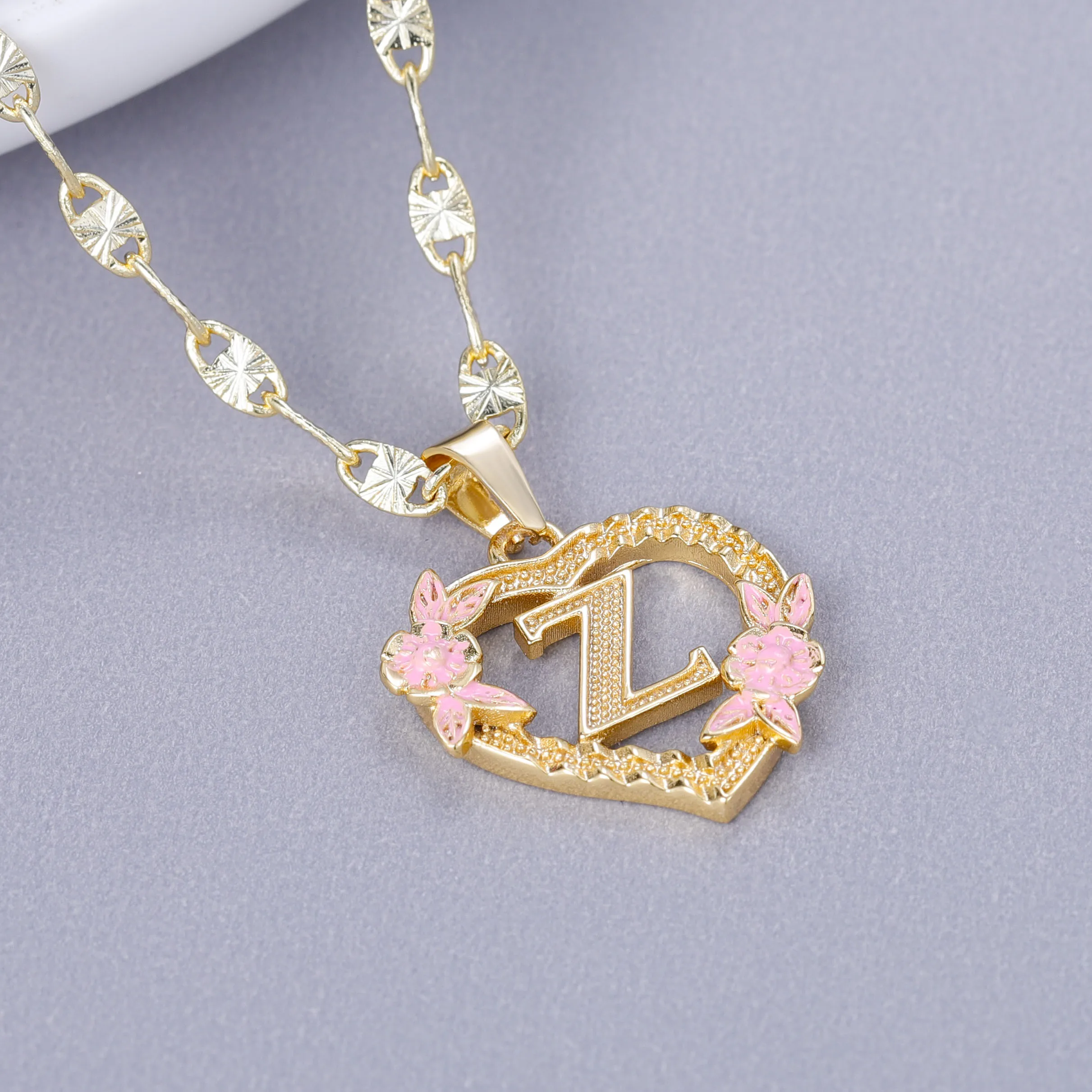 Позолоченная подвеска в форме сердца, цветка, инициала, буквы с цепочкой Фигаро 24 дюйма, 4 мм, ожерелье в форме сердца, подарок на день Святого Валентина