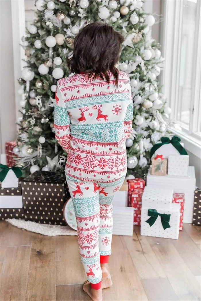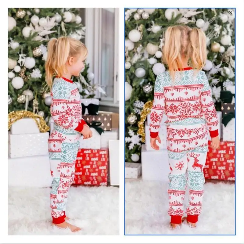 2021новогодняя и Рождественская одинаковая Пижама для всей семьи, комплекты для взрослых и детей, женский топ + штаны, рождественские пижамы с принтом оленя, комплект одежды для сна