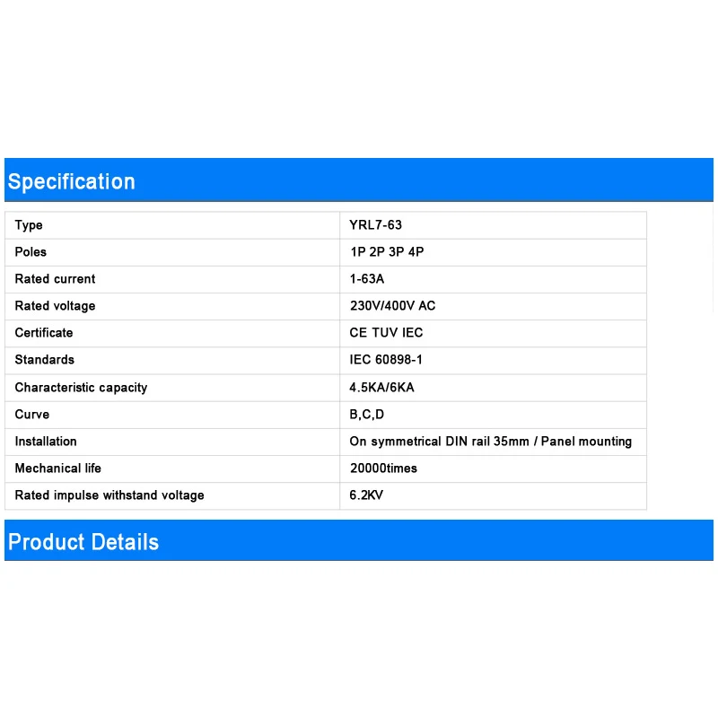 Мини-автоматический выключатель переменного тока 3P MCB 6A 10A 16A 20A 25A 32A 40A 50A 63A