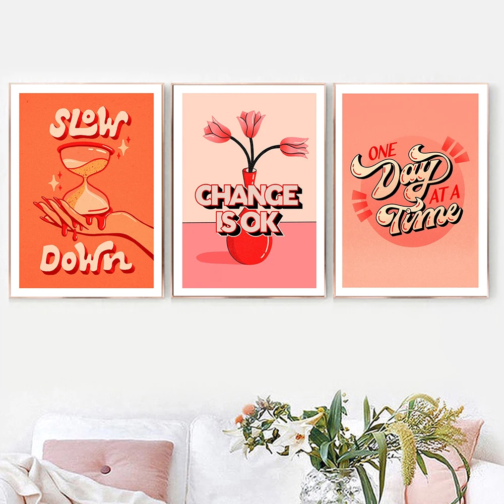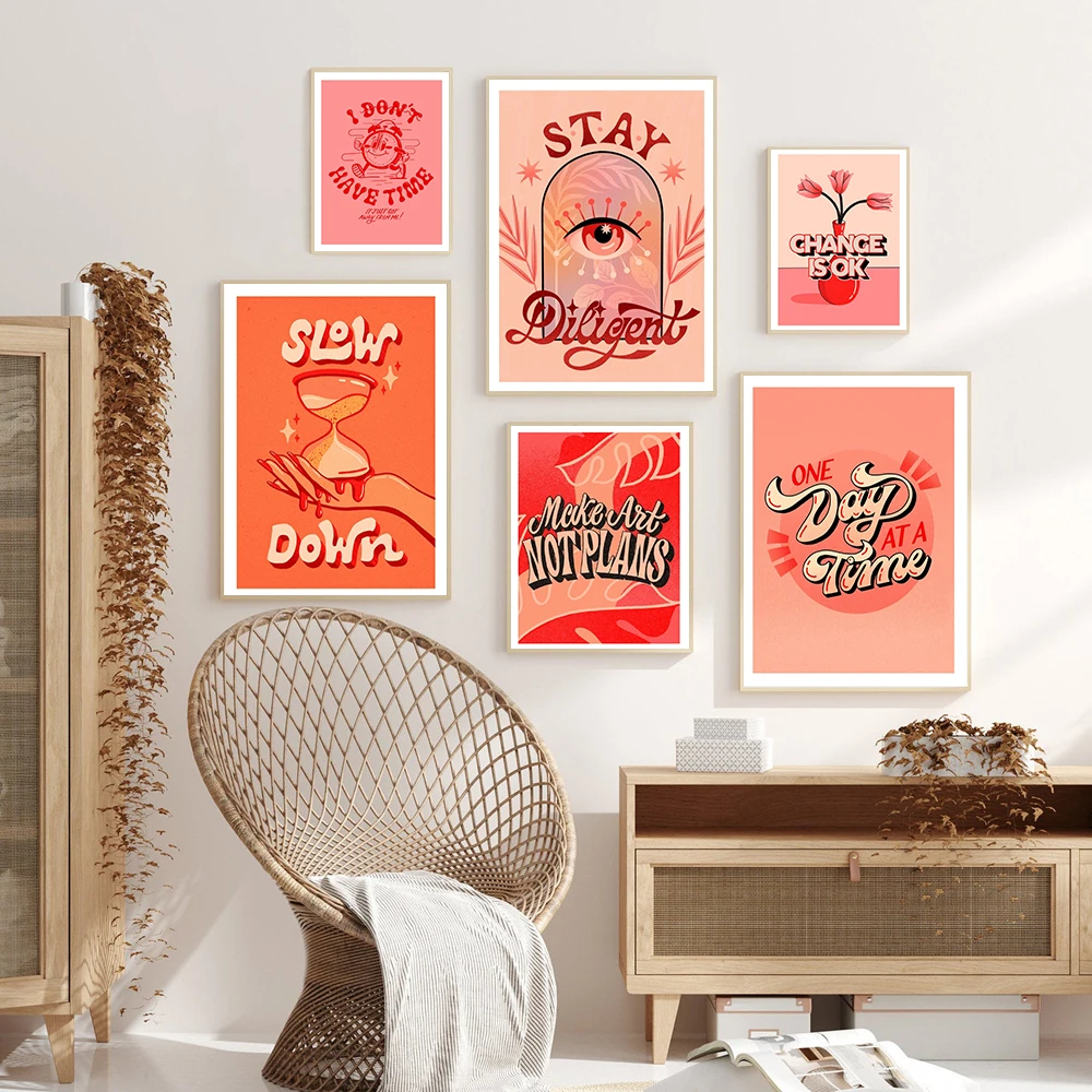 Скандинавская винтажная мультяшная Картина на холсте Абстрактная Художественная печать прилежное время цитаты постеры девушка картина для гостиной домашний декор