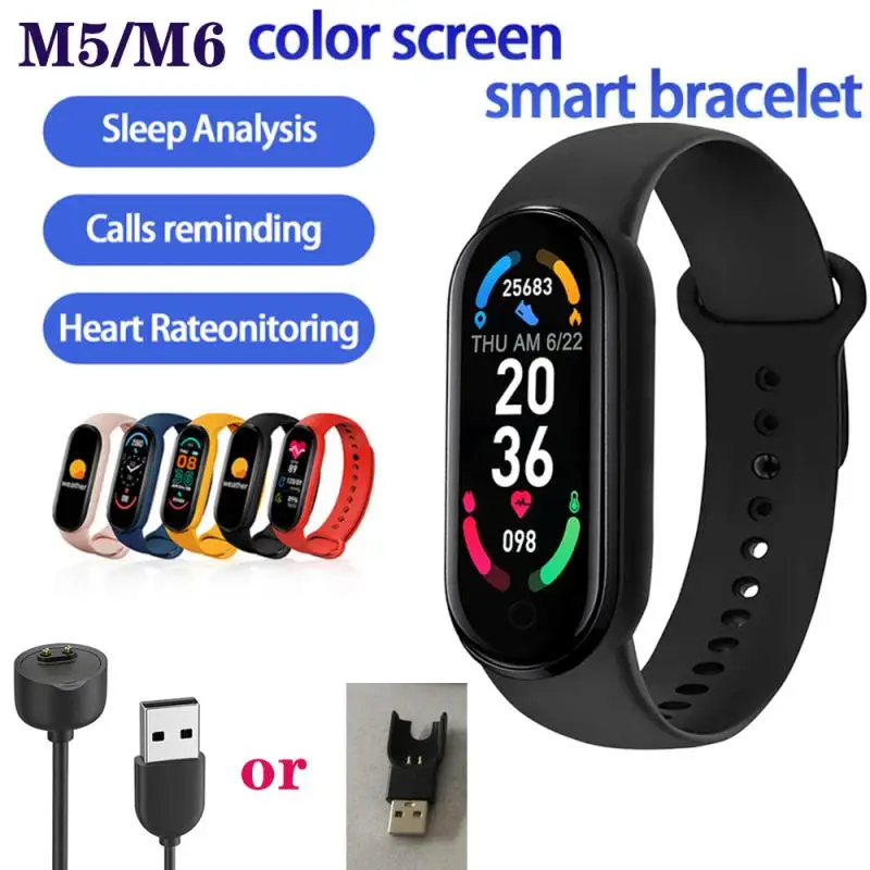 Смарт-браслет M5M6, фитнес-трекер, пульсометр, тонометр, цветной экран, спортивный браслет для IPhone, Xiaomi
