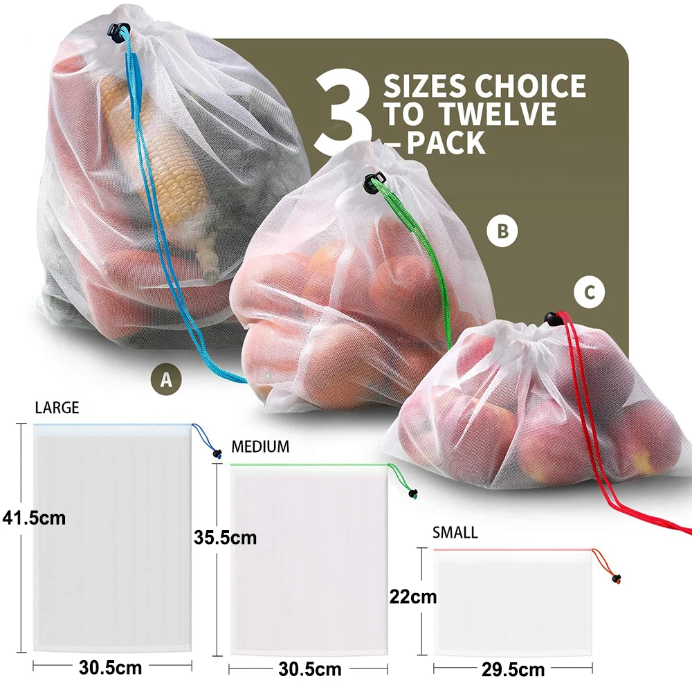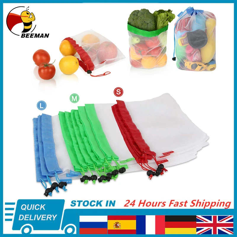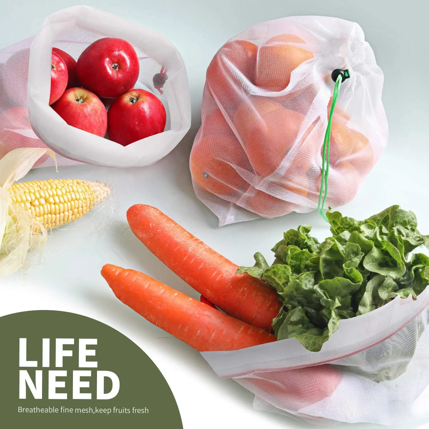 Многоразовые сетчатые сумки для продуктов, моющиеся, экологически ч...
