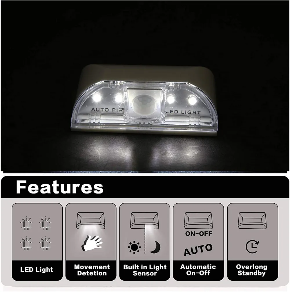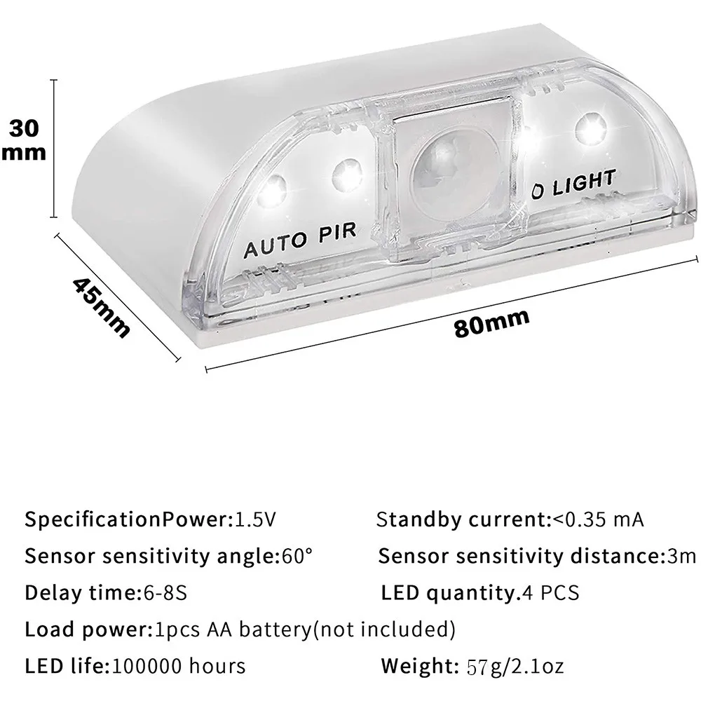 Питание от батарейки, 4 светодиодных фонаря, инфракрасный PIR, автоматический датчик движения, дверь шкафа, гардероба, туалета, светодиодный ночник