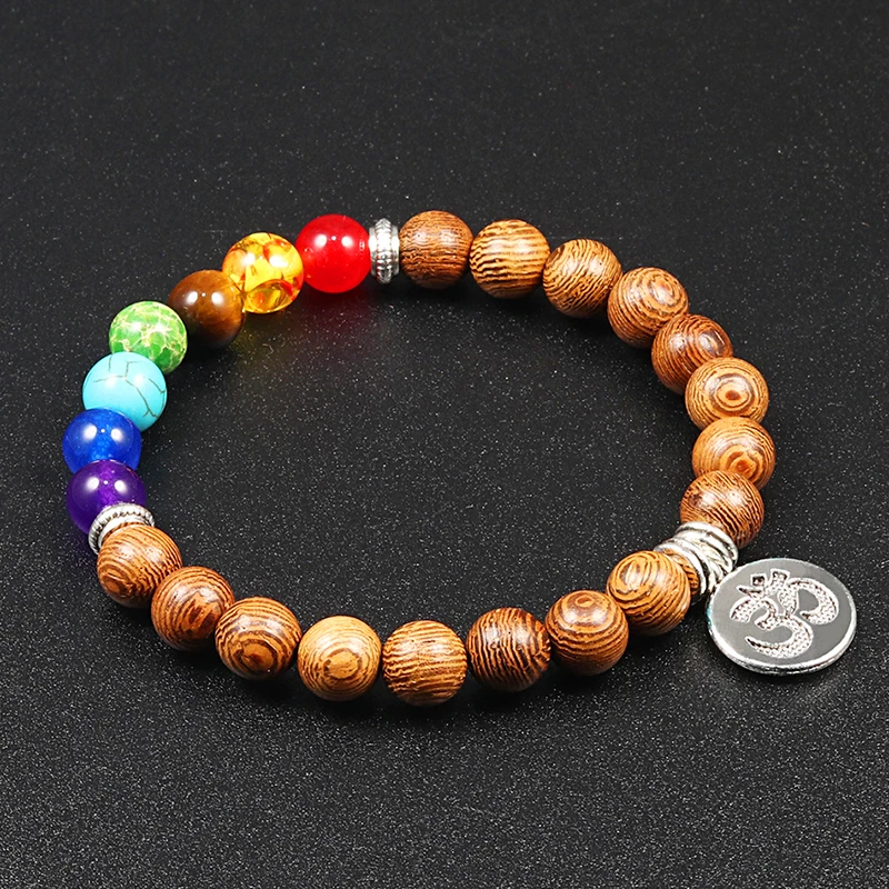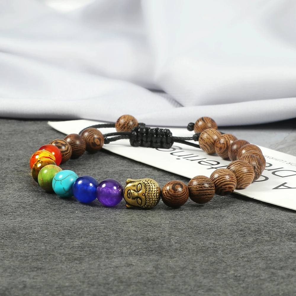 Модные мужские браслеты из натурального дерева с бусинами 7 Charkra Ethinc браслет для медитации Модный женский браслет для йоги молитвы ювелирные изделия подарок любимому