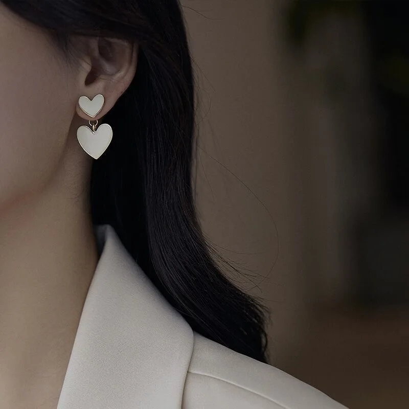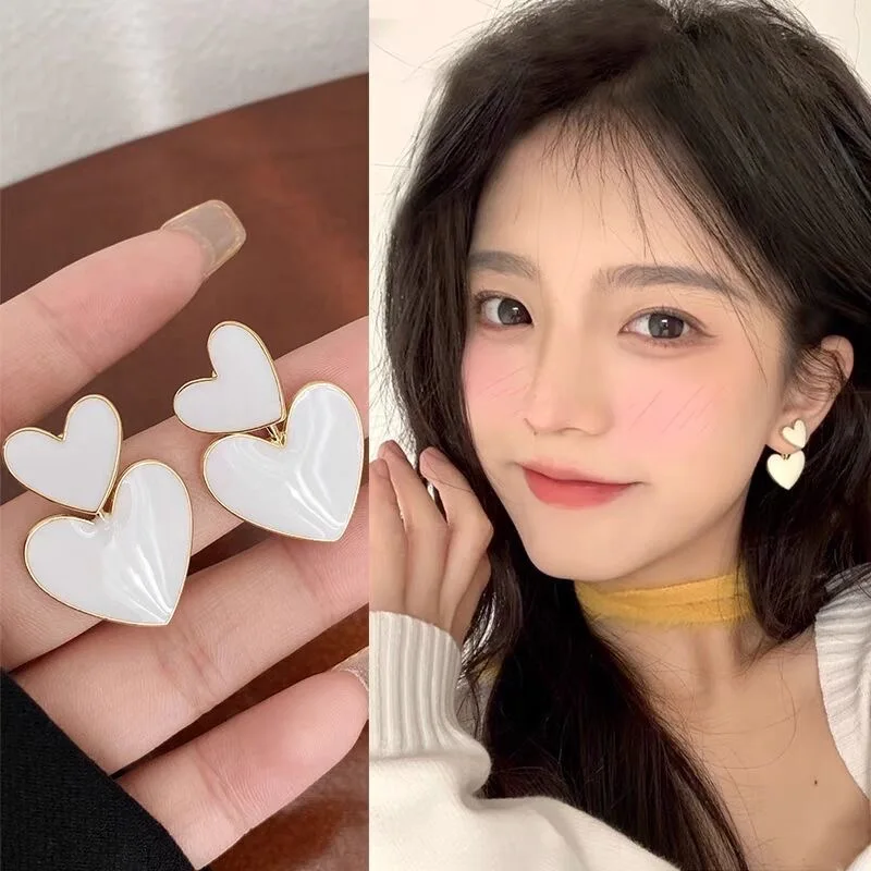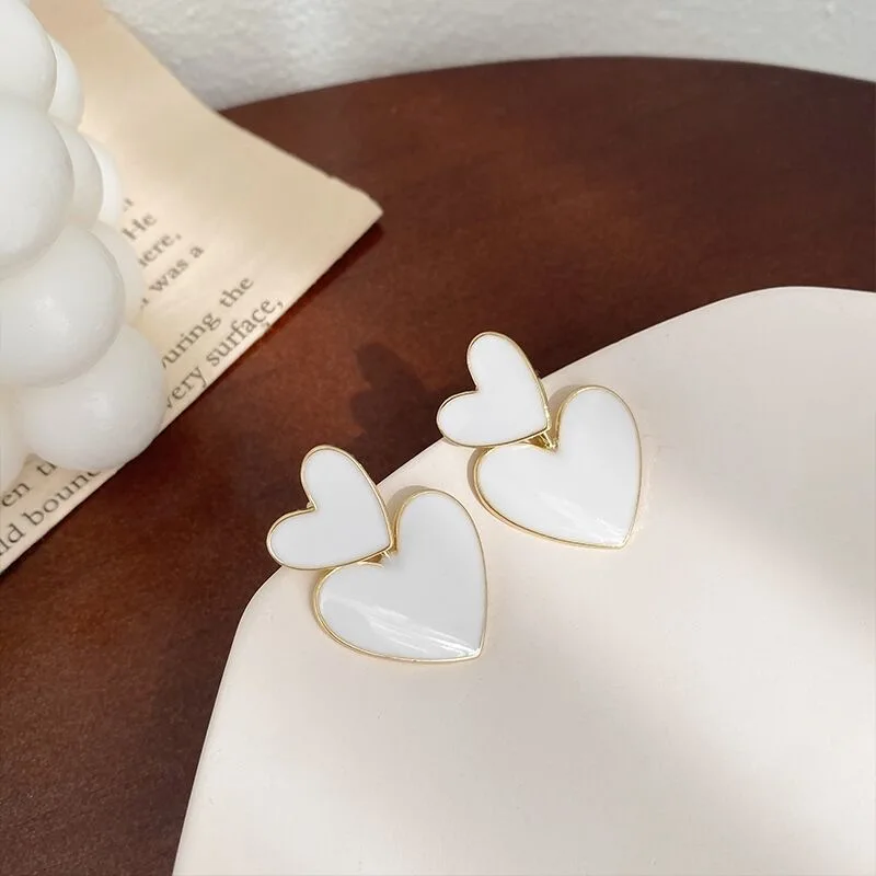 2021 элегантные белые серьги-гвоздики с двойным сердцем для женщин Корейский, геометрической формы Эффектные серьги Mujer Bijoux