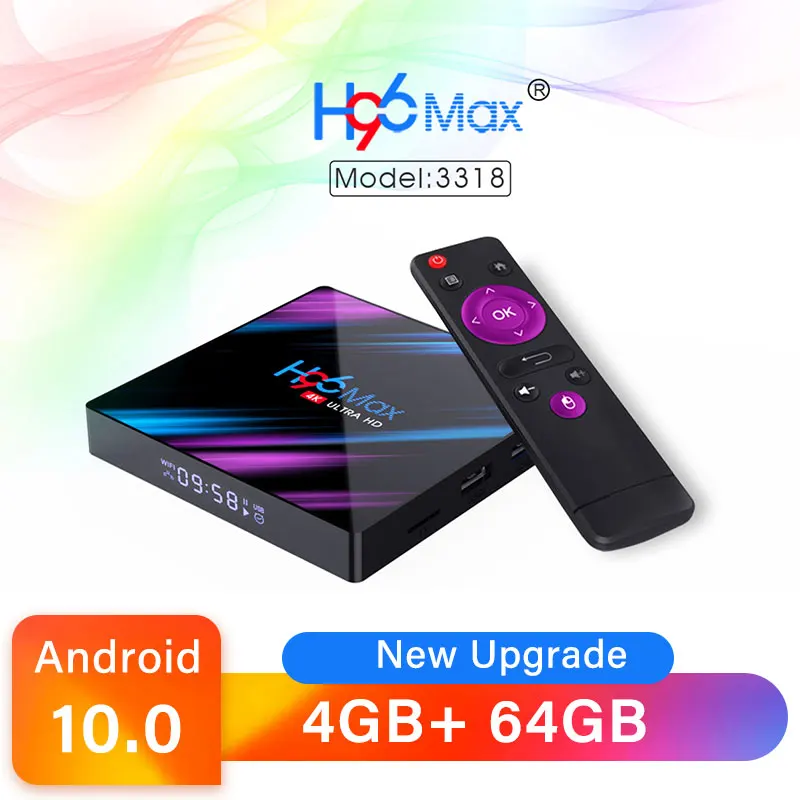 Приставка Смарт-ТВ H96 MAX, Android 10, 4 + 32 ГБ, 4K, 2 + 16 Гб