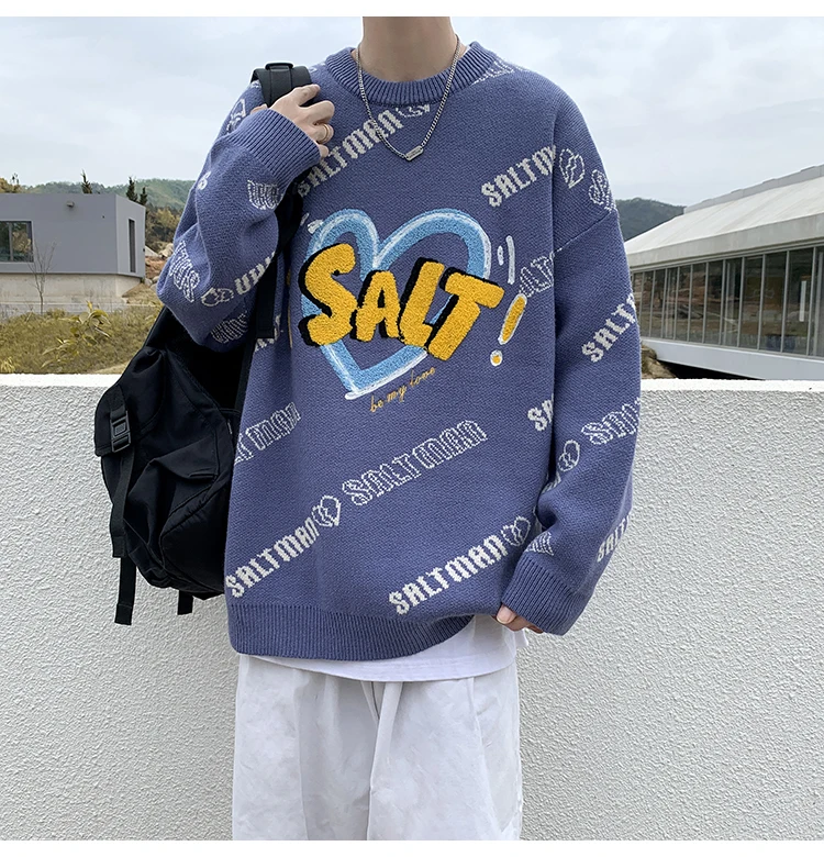 Пуловер мужской вязаный, оверсайз, модные свитера, осень, 2021