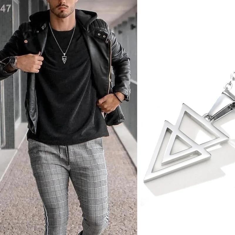 Мужское ожерелье, треугольная подвеска для мужчин, ожерелье из нержавеющей стали с геометрическим рисунком, мужское ювелирное изделие