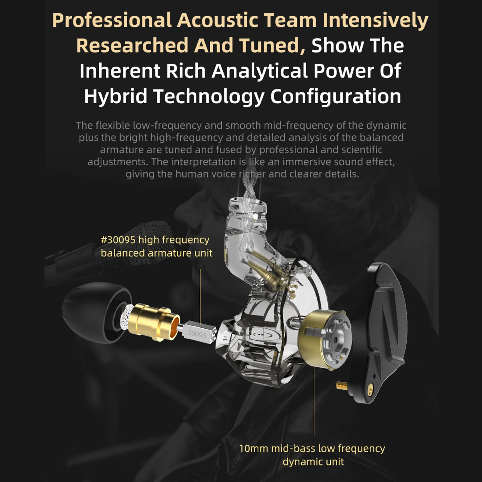 Наушники-вкладыши KZ ZSN Pro X 1BA + 1DD, гибридные Hi-Fi наушники с монитором, спортивные наушники с шумоподавлением